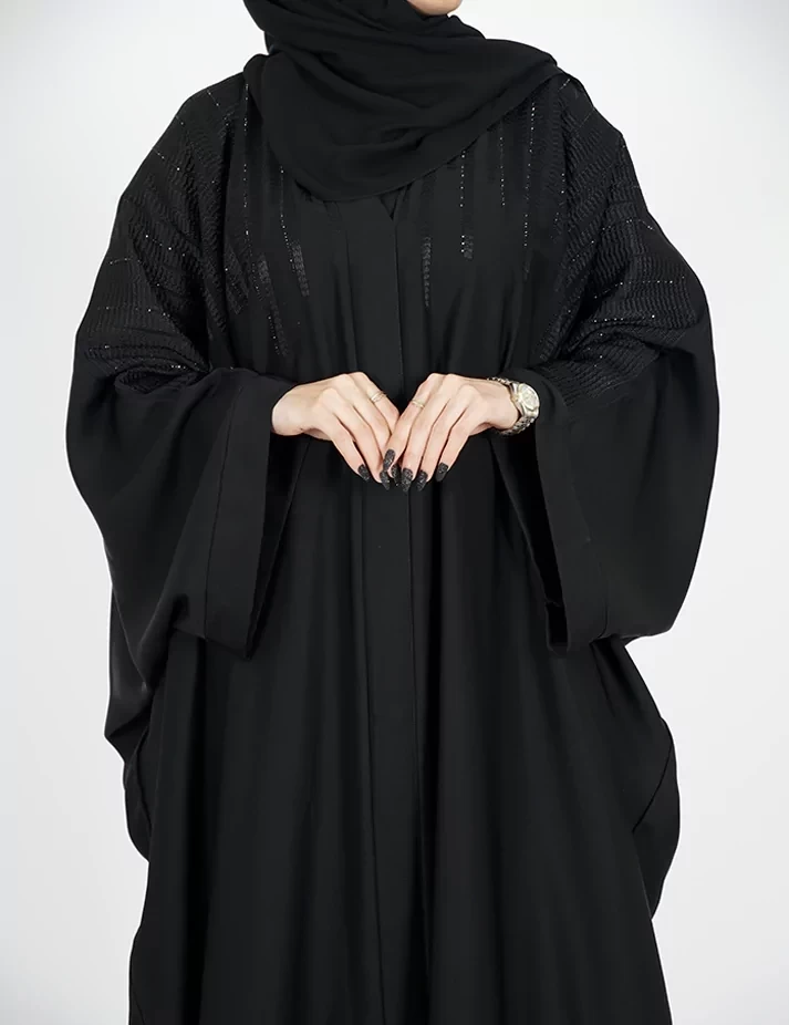 نوع القماش : النداءرقبة سبعة مغلق الامامعلى تطريز و فصوص بالصدريدات عريضه على زرارت |