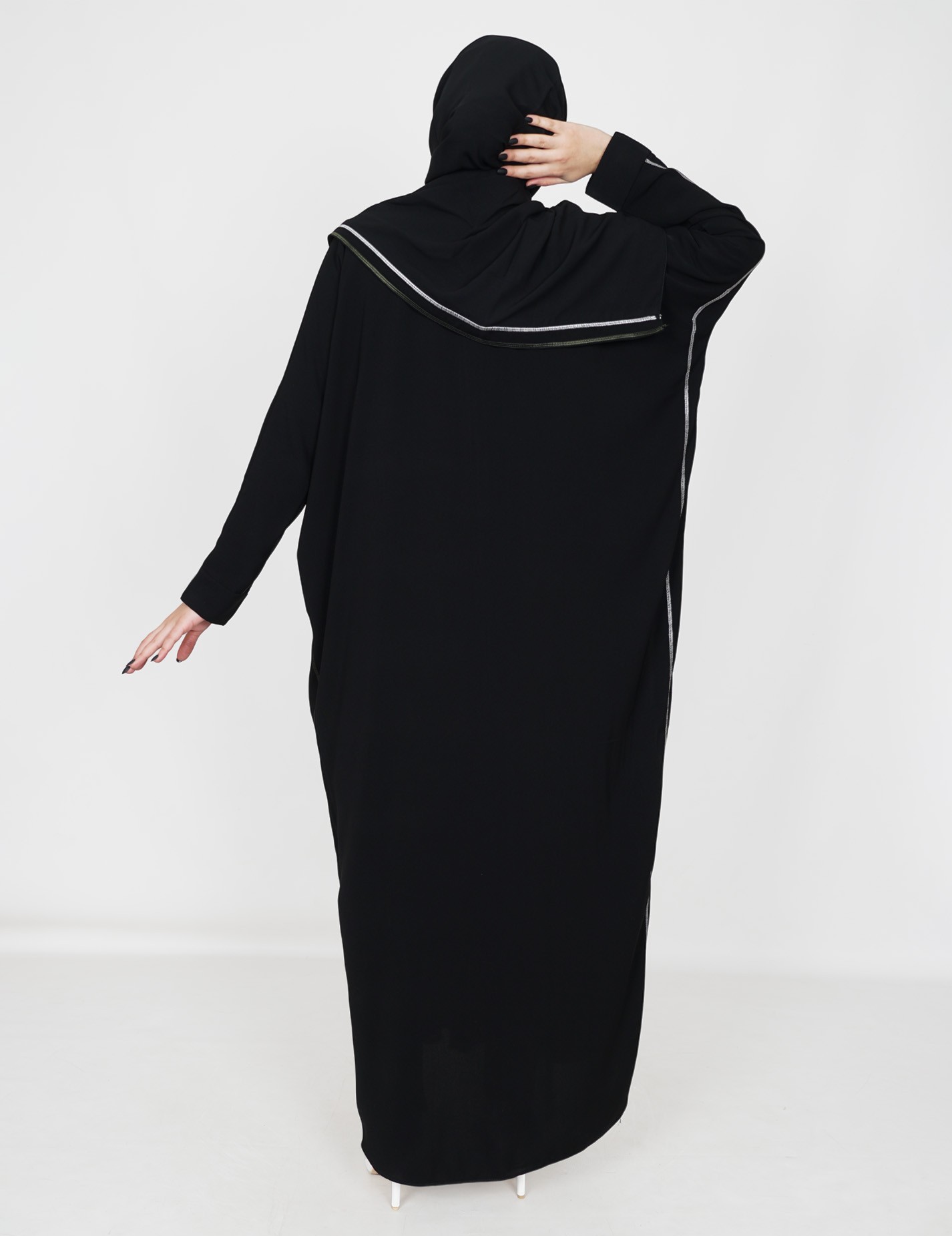 القماش : نصف القمر كوريالرقبة سبعة زرار بالامام و الباقي مغلقعلى ستان بيج بالامام و ستان اخضر بالخلفيدات عادي |