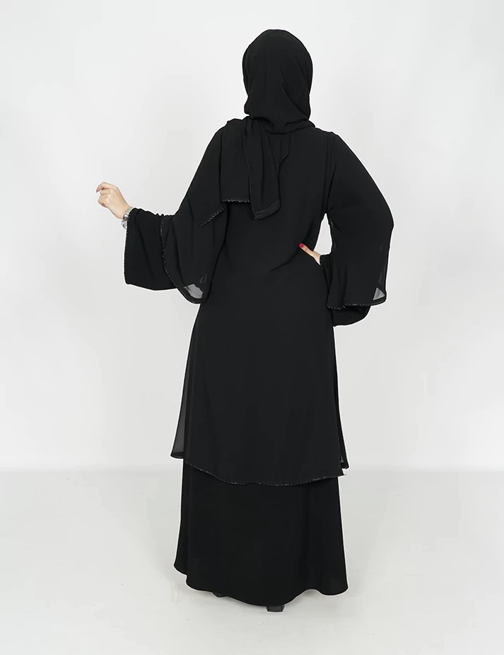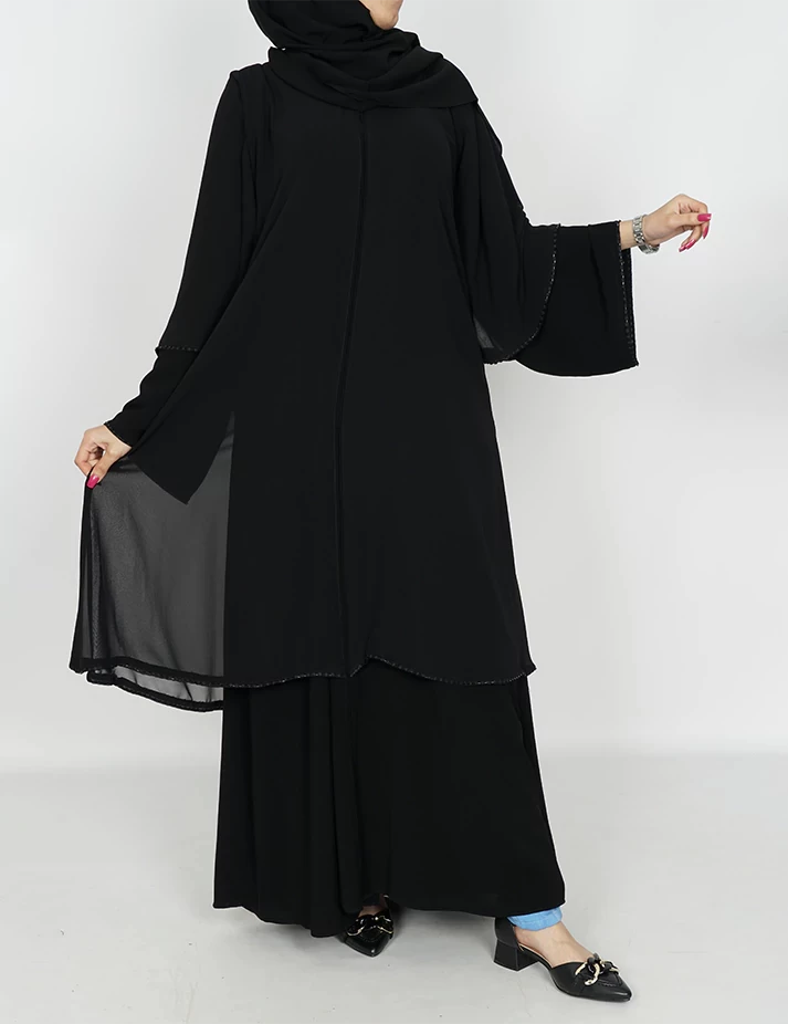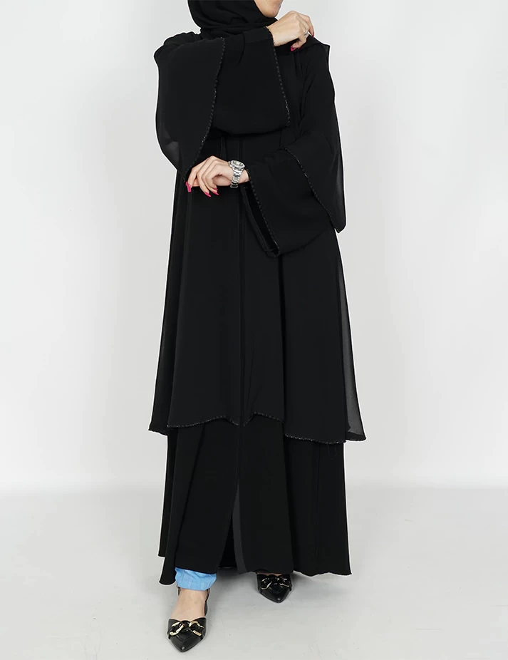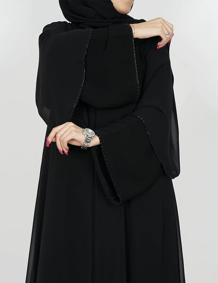 القماش : نصف القمركوري رقبة سبعة يدات عريضه على زرارت على قطعتين قطعه نصف القمر و قطعه شيفون