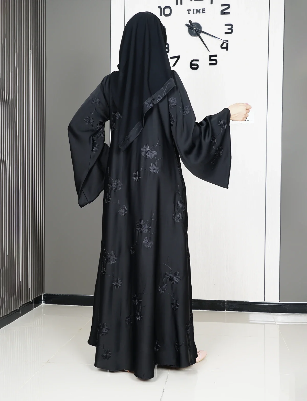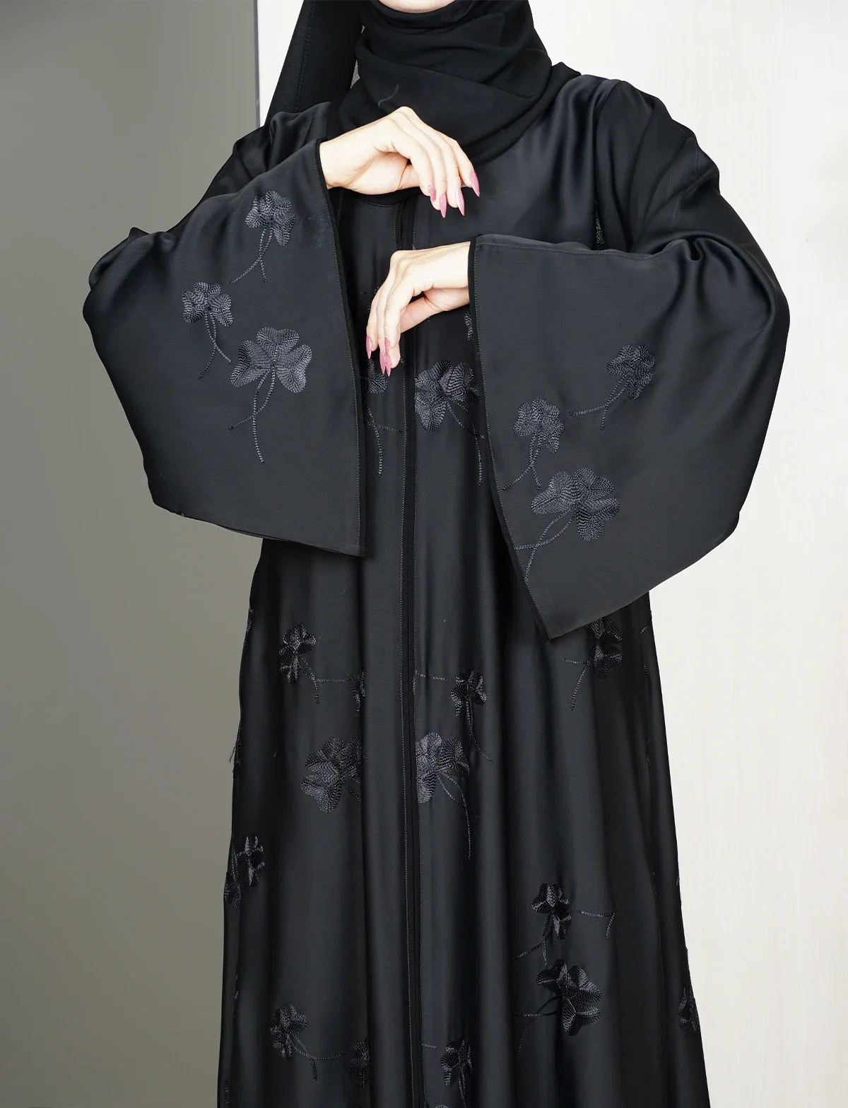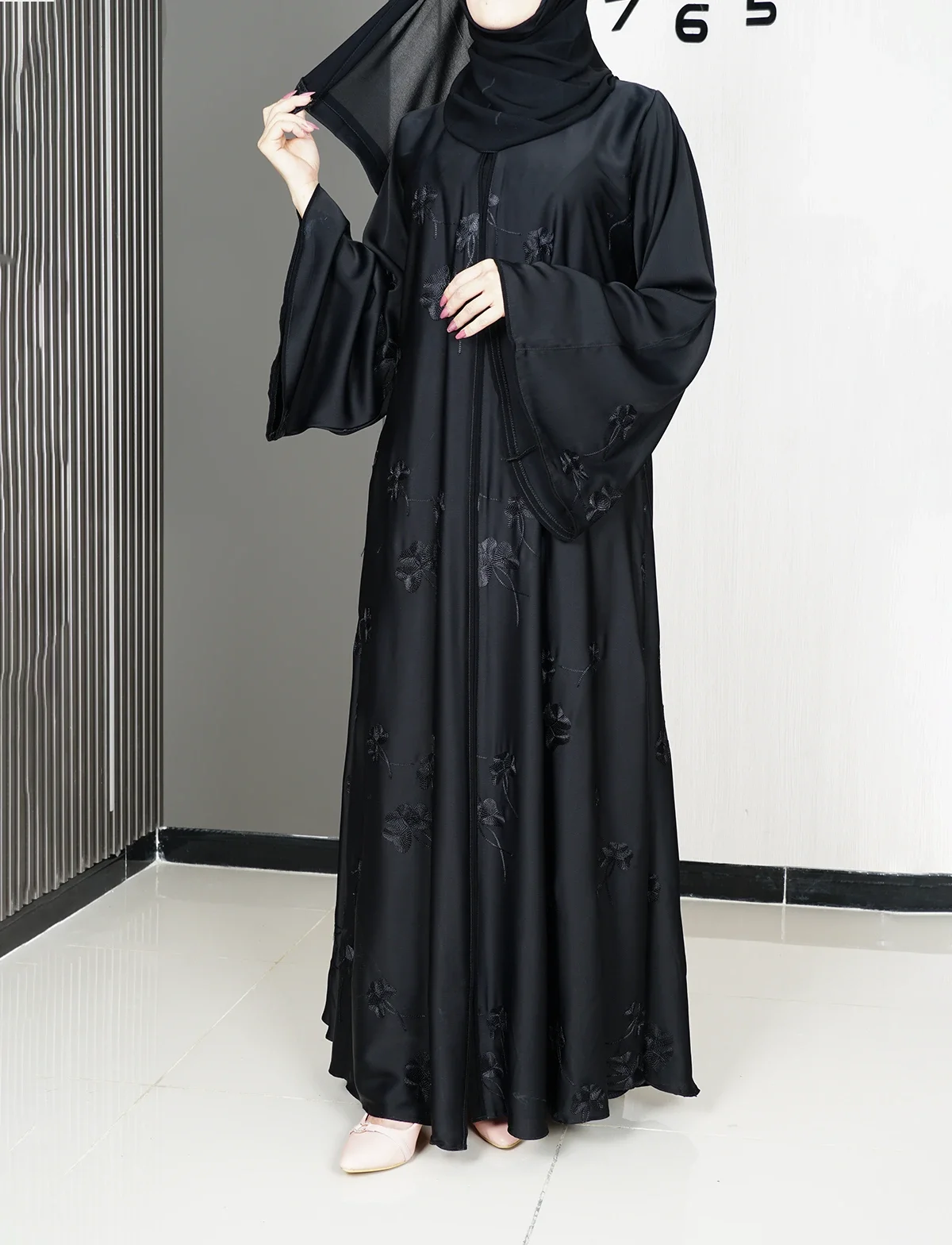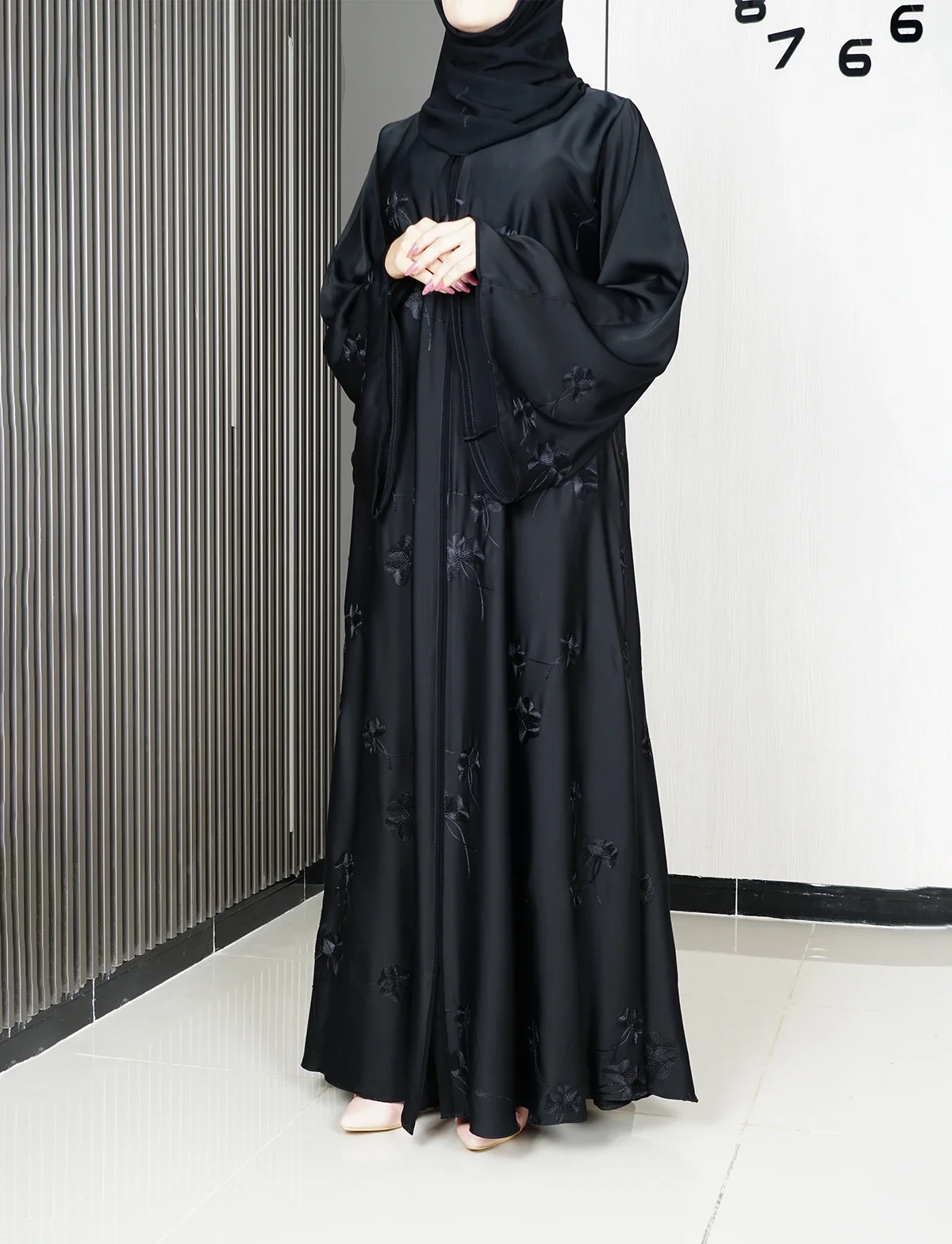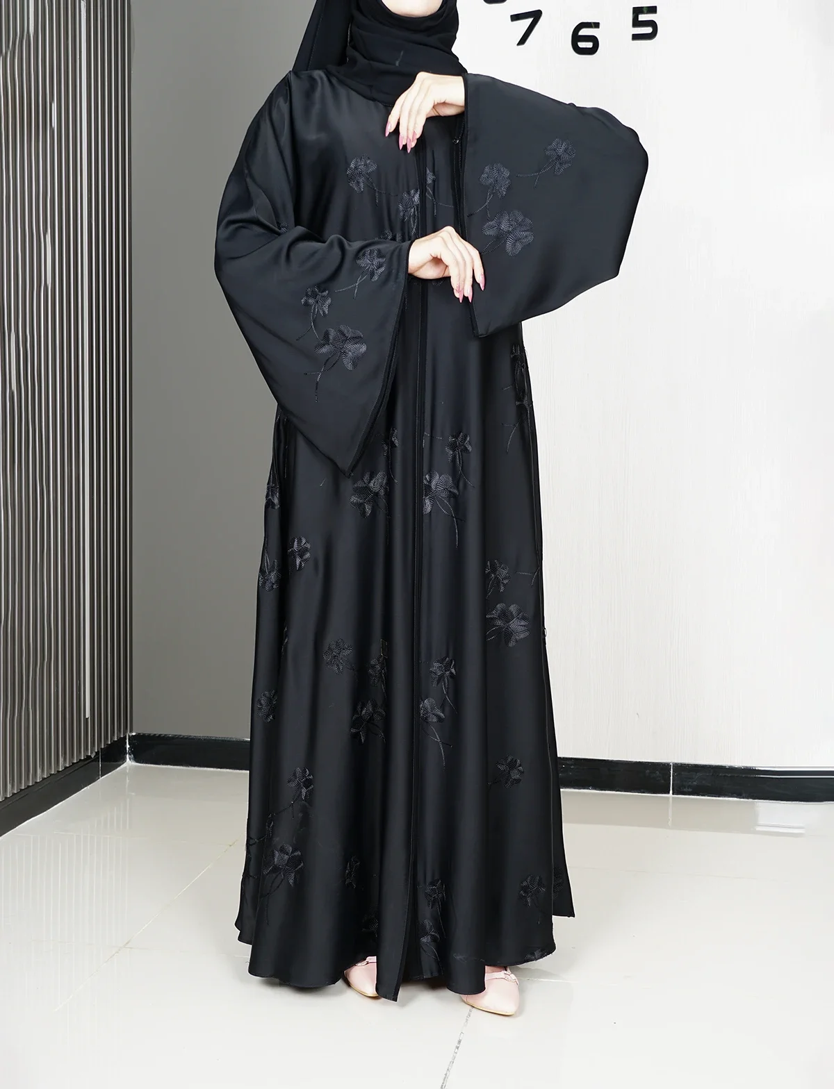 عباية على شكل بالونة كلوش تطريز عصادة خيط كمبيوتر مغلق من الأمام مع زرار واحد في الرقبة التي تأتي على شكل سبعة