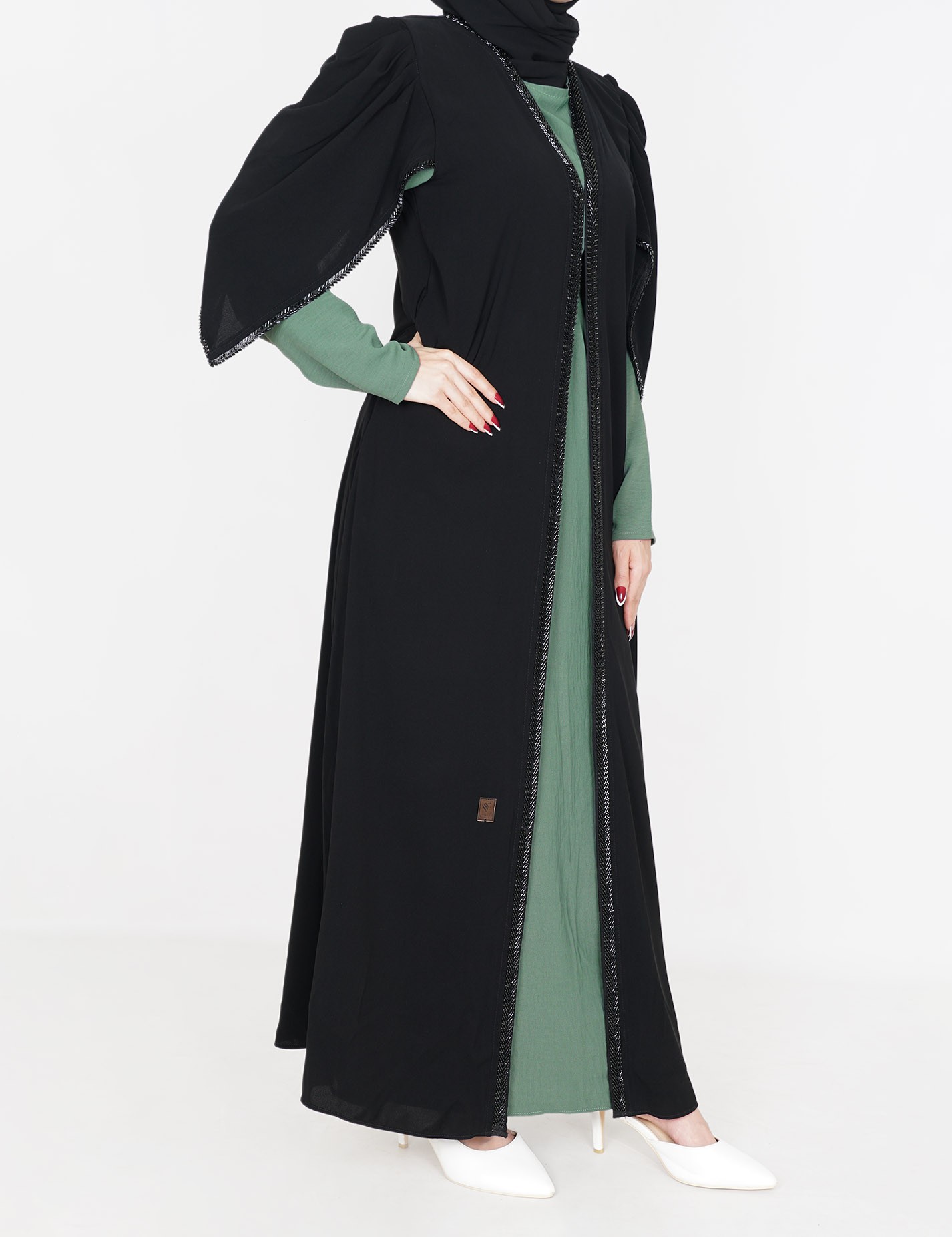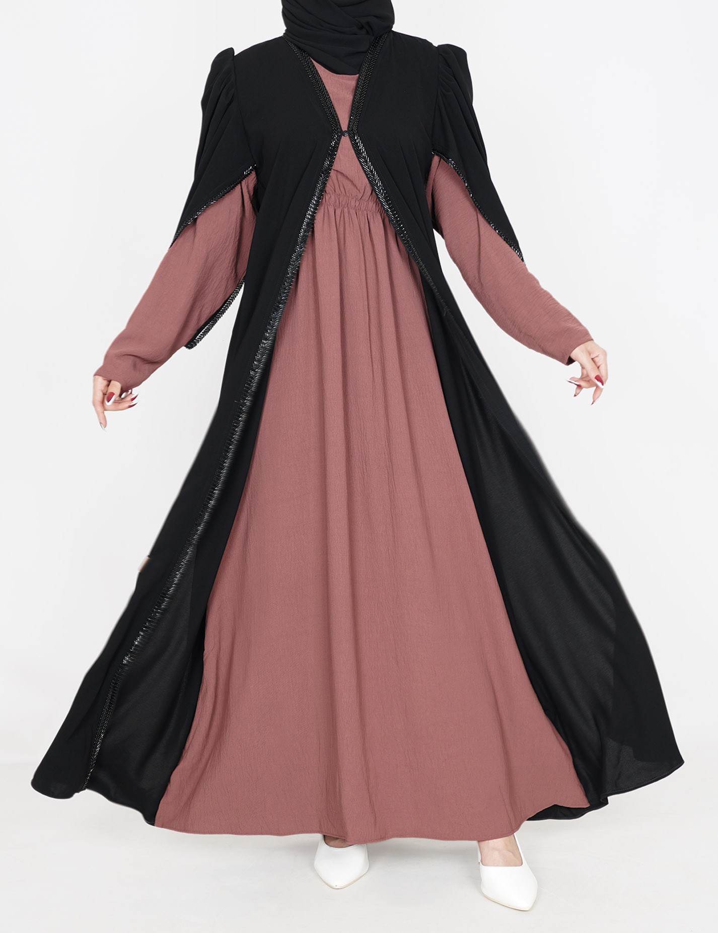 رقبة سعبة مفتوح الامام على قماش ملون من تحته