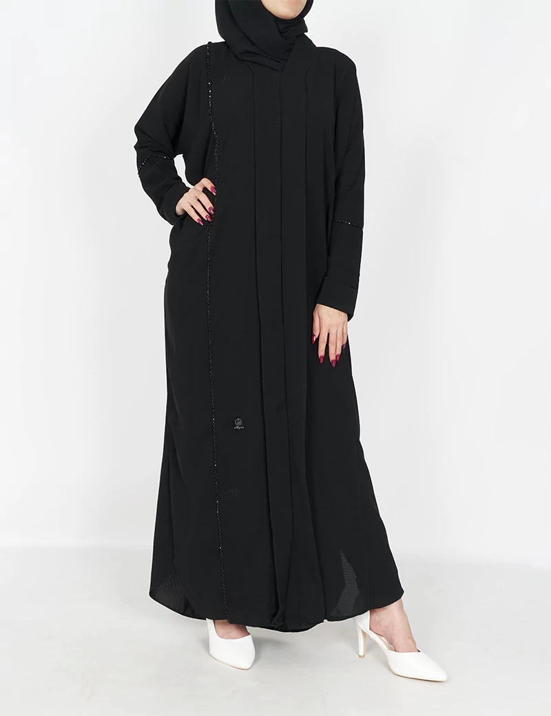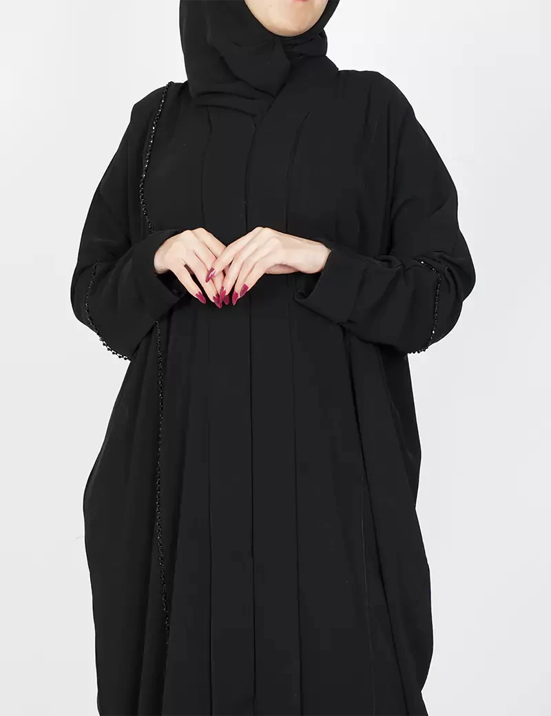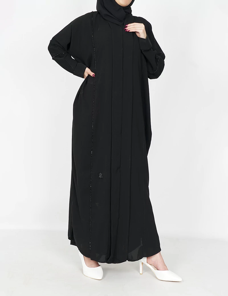 نوع القماش : نصف القمر كوريرقبة سبعة على زرارين بالامام و من تحت مغلقعلى خرز بالجوانبيدات عادية |