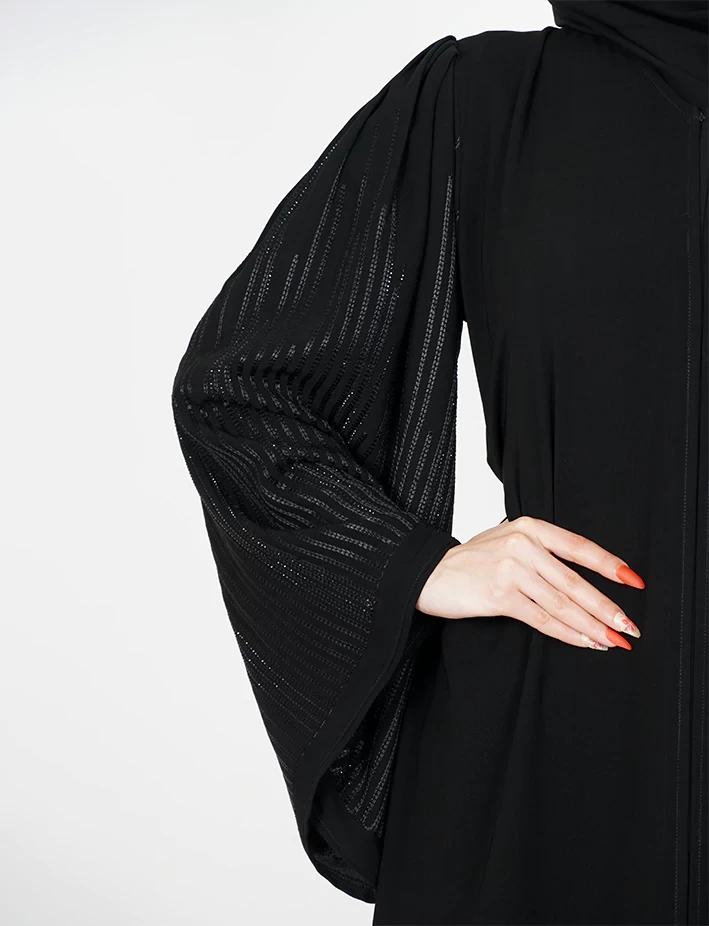 القماش : نصف القمر كوريرقبة سعبة على زرار بالصدر و من تحت مغلقعلى كسرات بالاكتافعلى قيطان و فصوص باليداتيدات عريضه على زرارت |