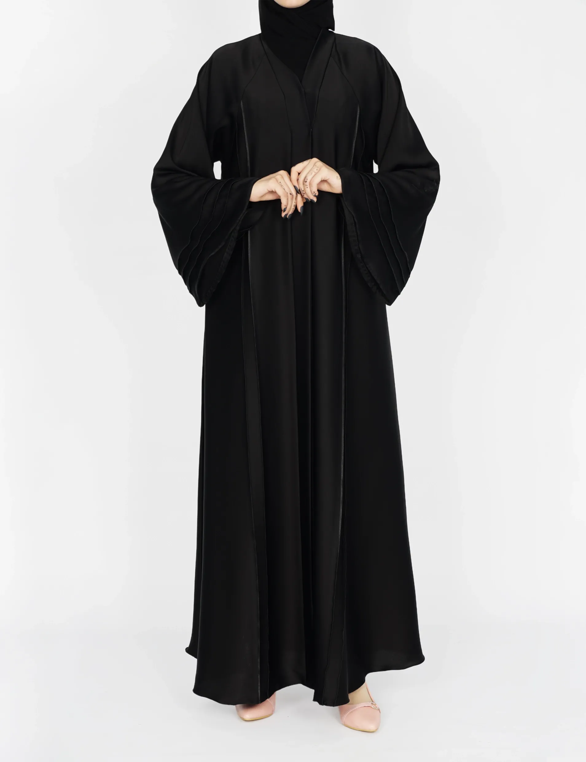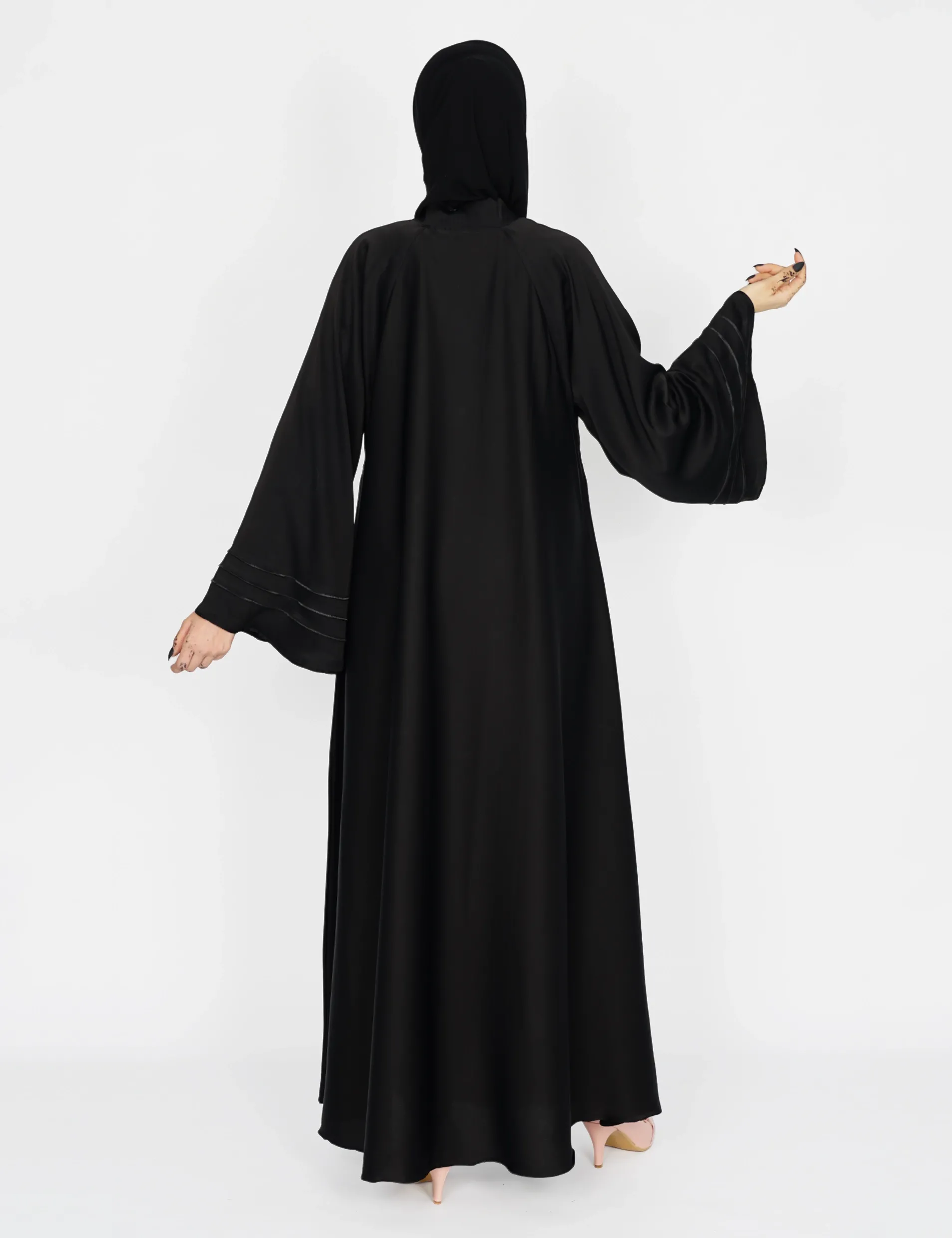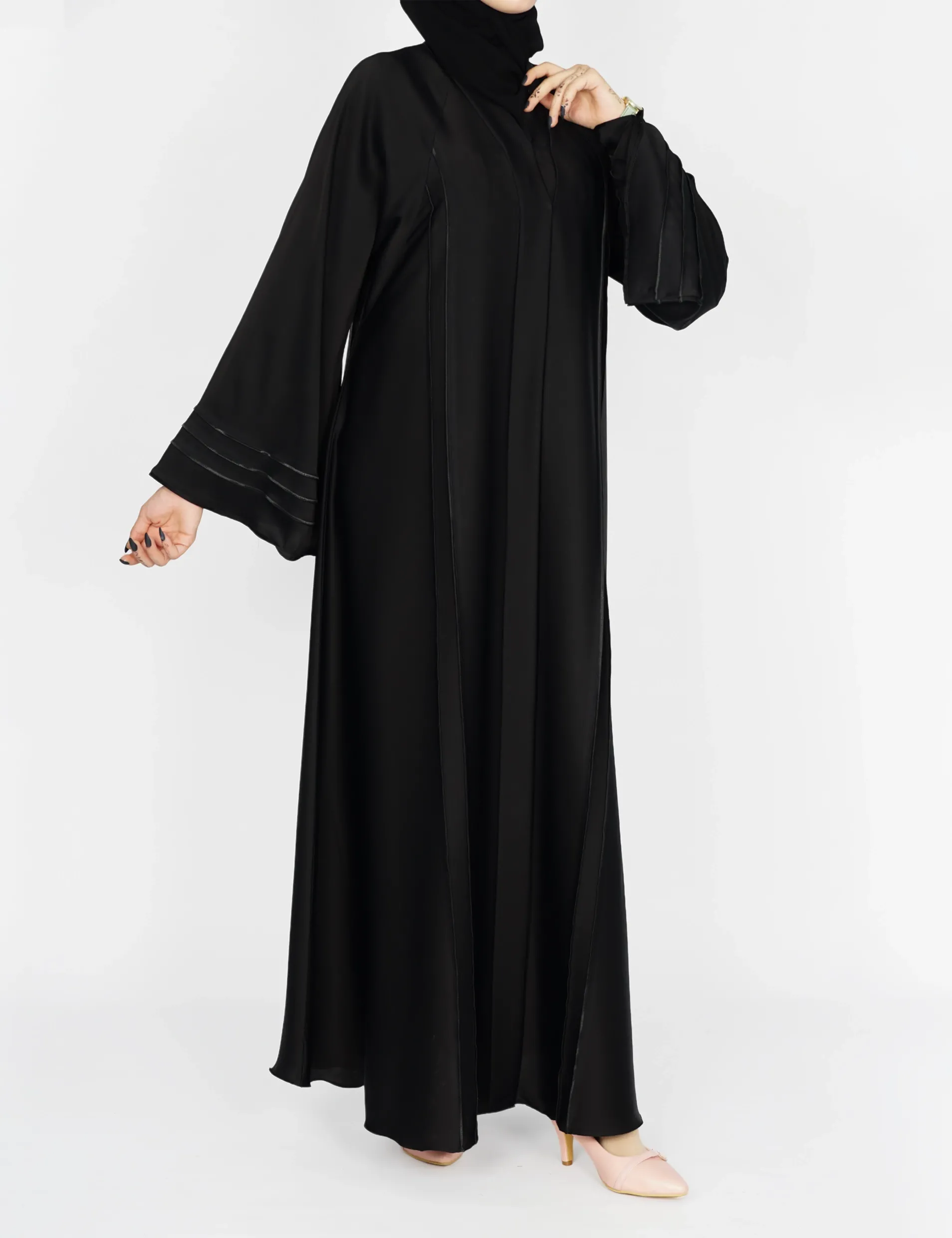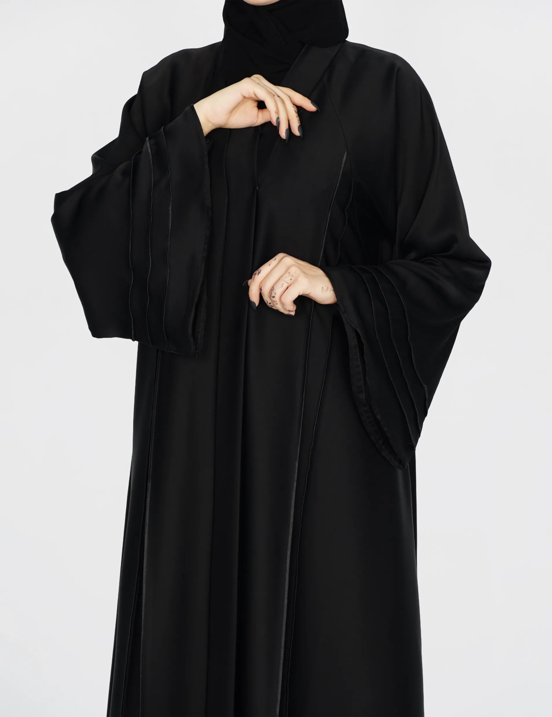 القماش : حريررقبة سبعة على زرار بالصدر و من تحت مغلققيطان بالامام واليداتيدات عريضة على زرارات |