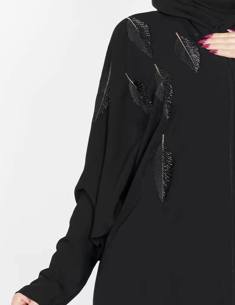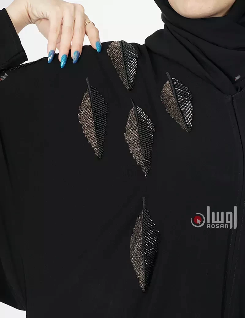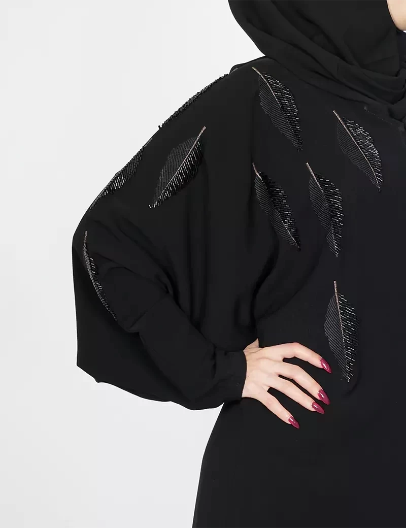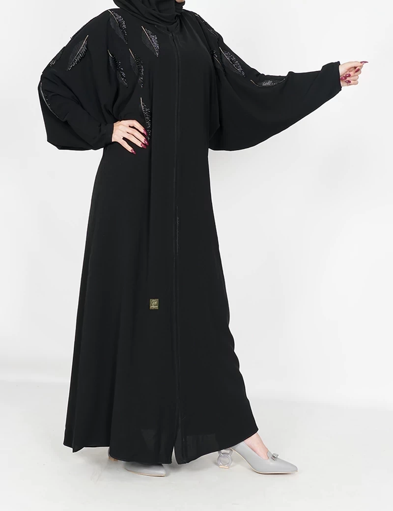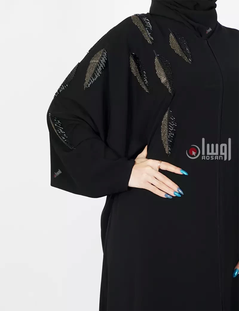 نوع القماش : نصف القمر كوريقصة رقبة سبعة على زرارواحد من الأمام و من تحت مغلقنقشة تطريزة بالأكمام و الأمامأكمام طويلة عادية. |