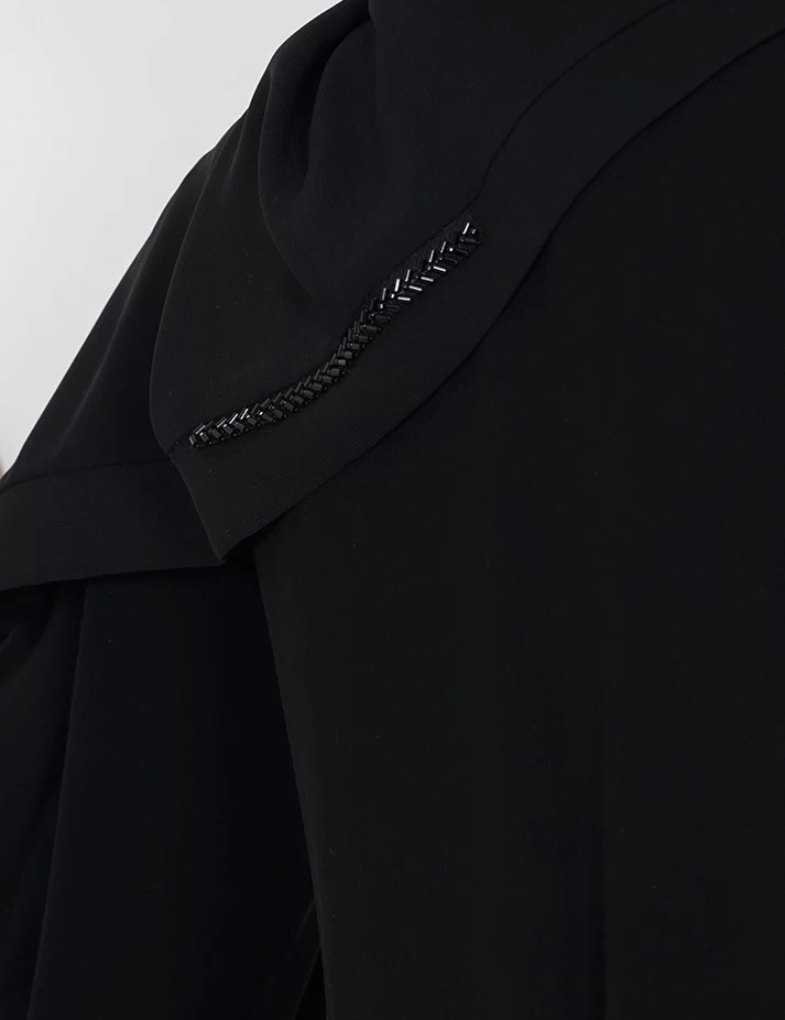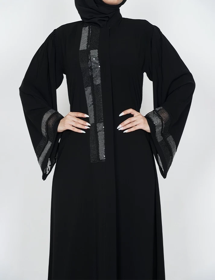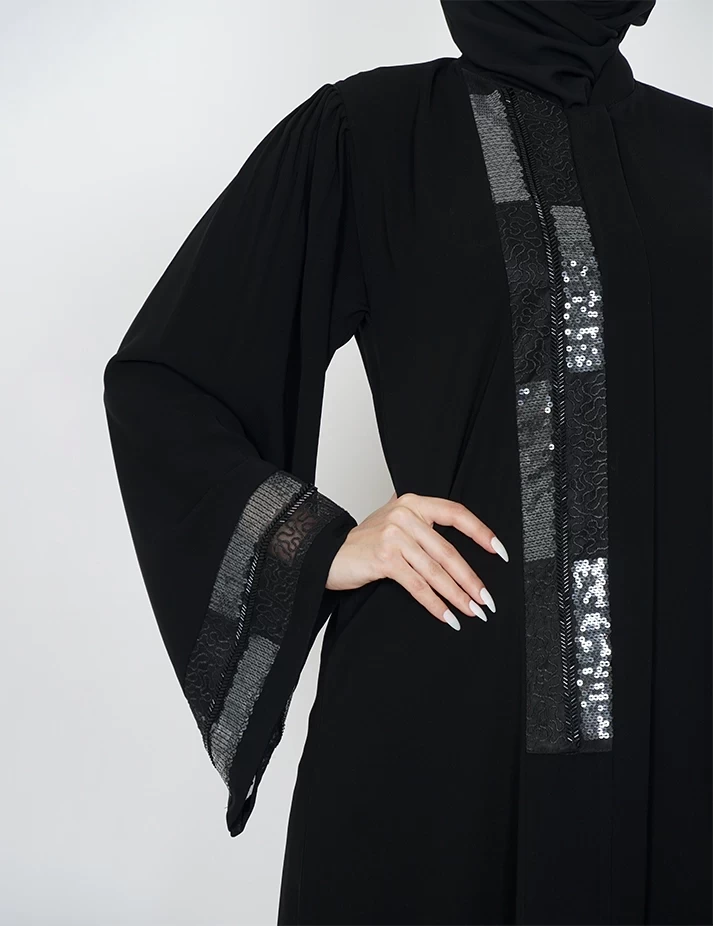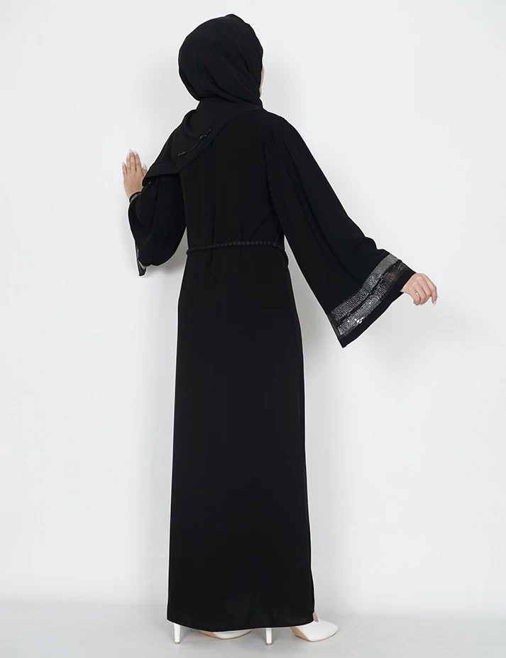 القماش : نصف القمر كوريرقبة سبعة على زرار و من تحت مغلقيدات عريضه على زرارتعلى كسرات باليداتعلى شبك بالامام و خرز بالامام و اليداتربطة حزام بالخصر + طرحة |