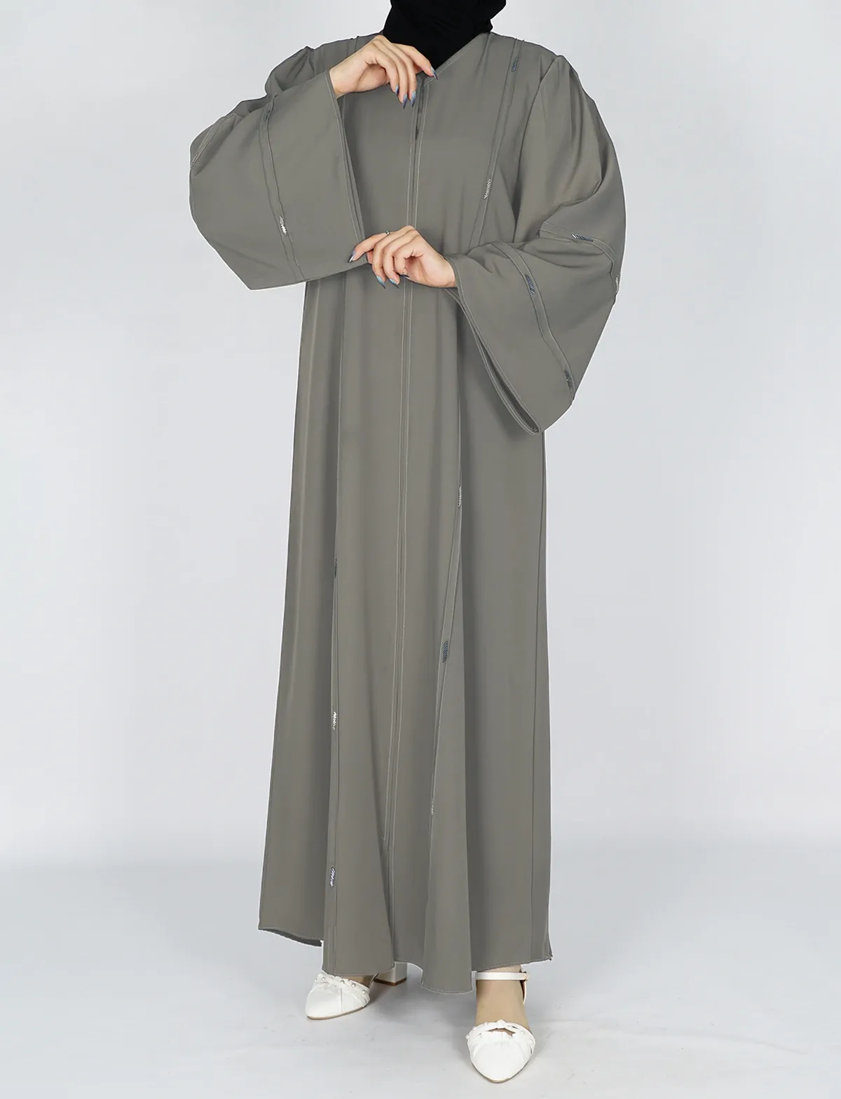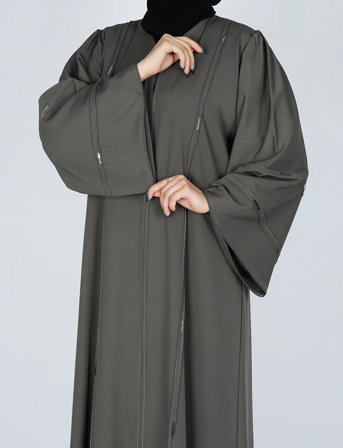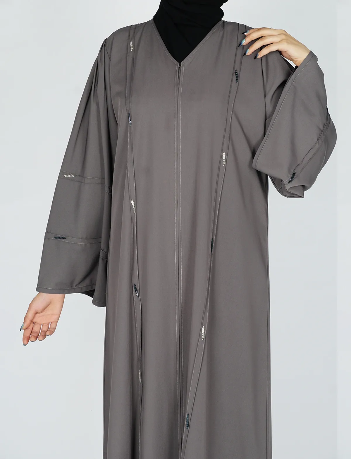 القماش : حرير ملونرقبة سبعة على زرار بالصدر ومن تحت مغلقعلى جبزور و خرز بالامام و اليداتكسرات بالاكتافيدات واسعة على زرارت |