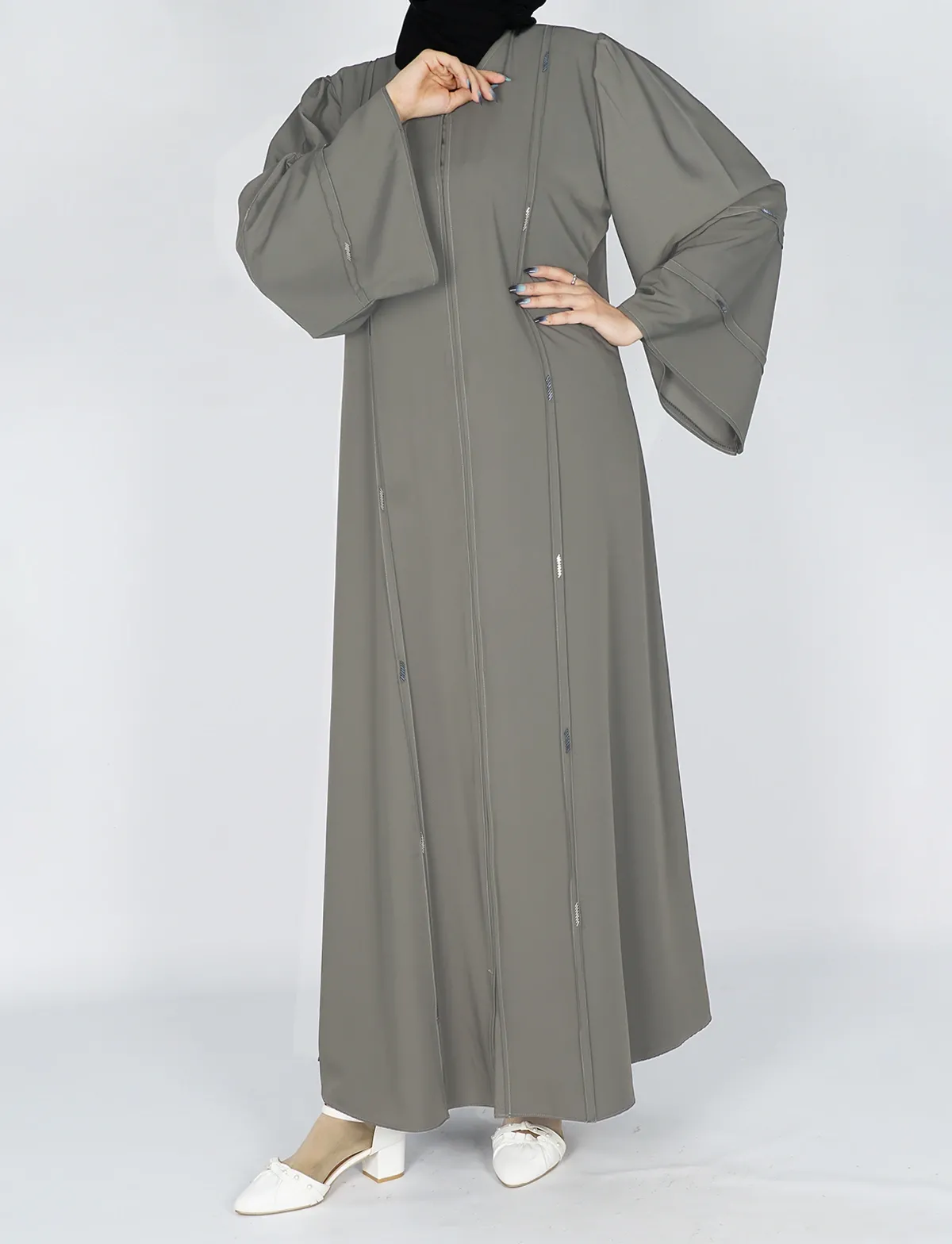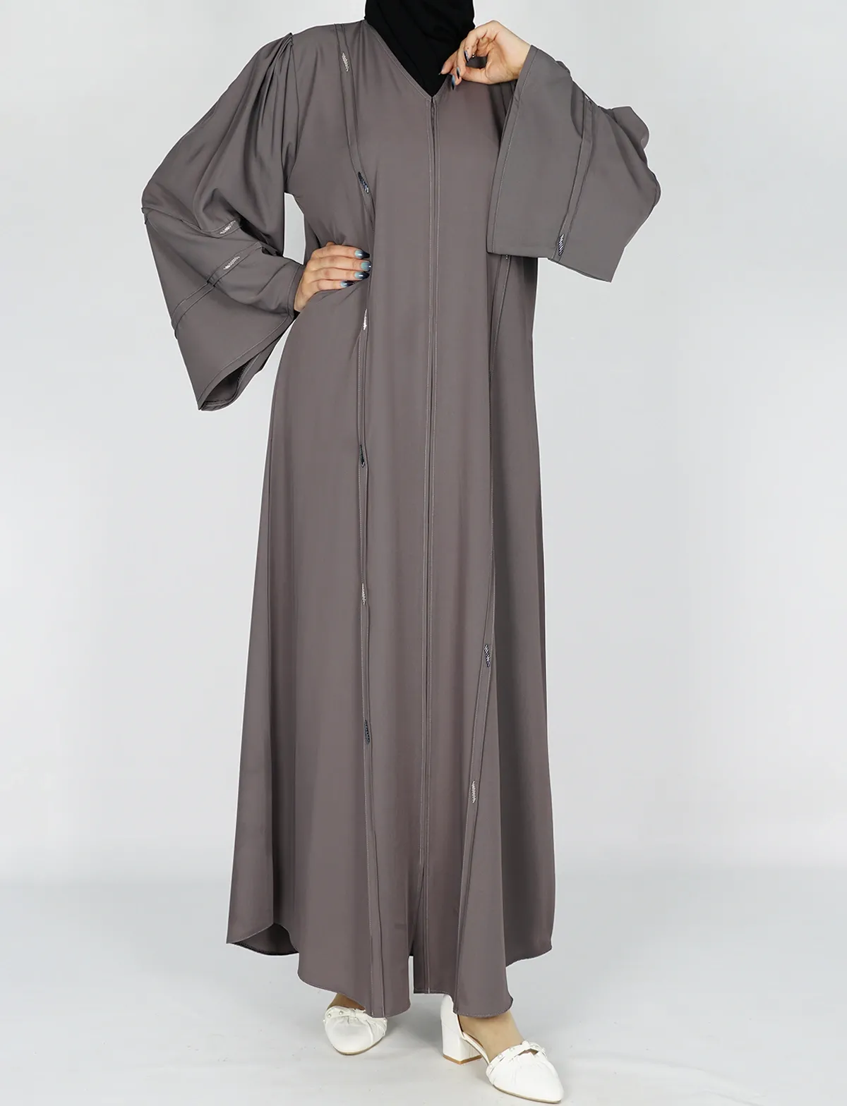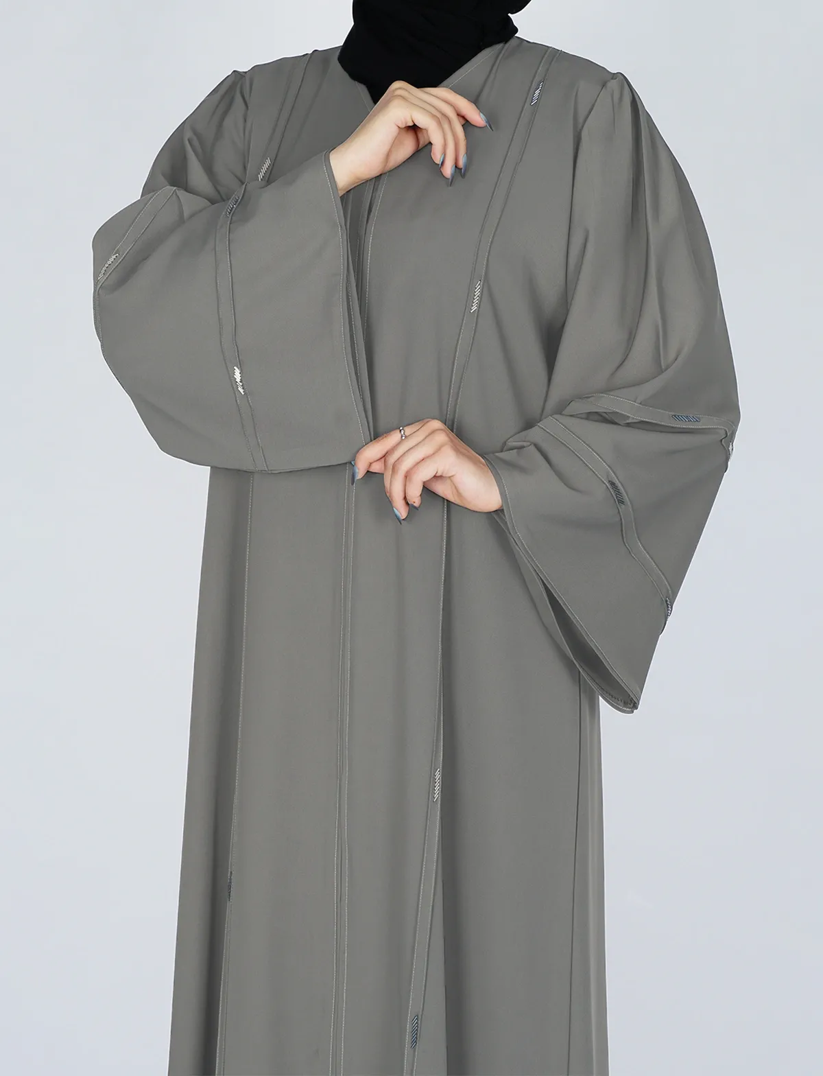 القماش : حرير ملونرقبة سبعة على زرار بالصدر ومن تحت مغلقعلى جبزور و خرز بالامام و اليداتكسرات بالاكتافيدات واسعة على زرارت |