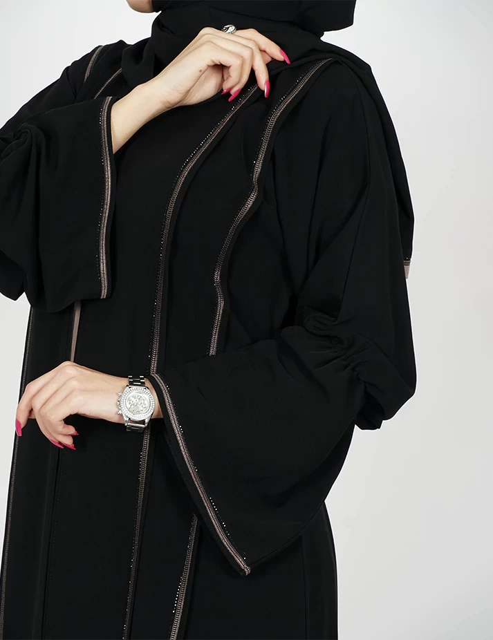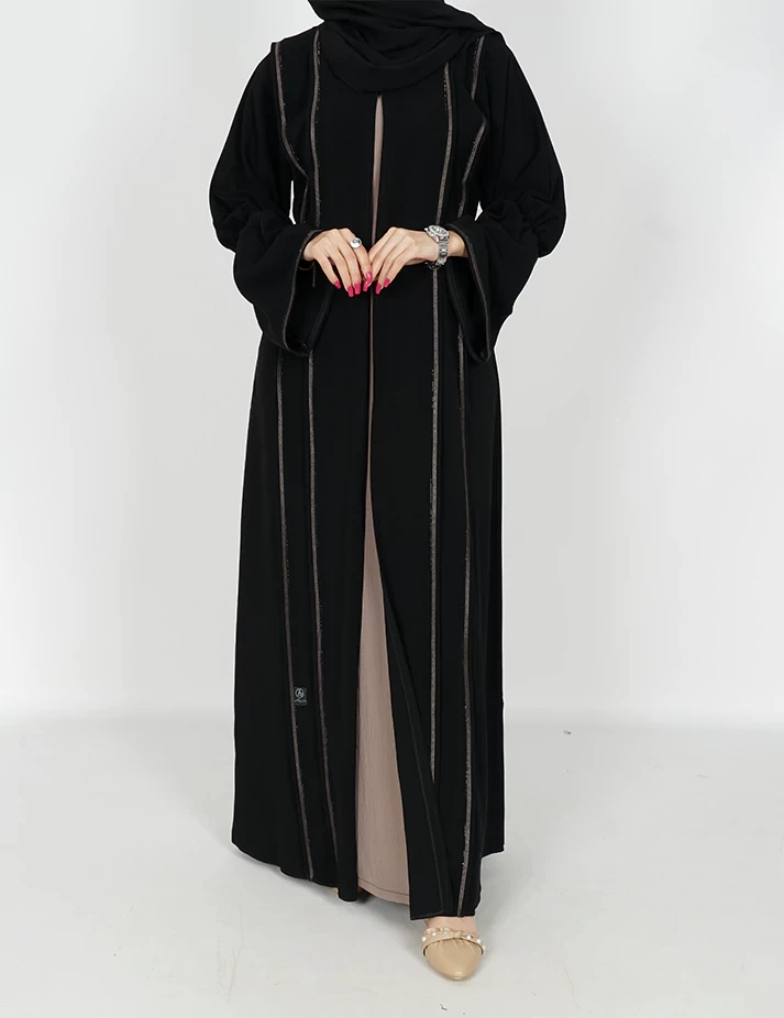 القماش : نصف القمر كوريرقبة مربعه مفتوح الامامطبقتين طبقة مغلق و طبقة مفتوحكسرات و فصوص بالاماميدات عريضه وكسرات مكرمشه باليدات
