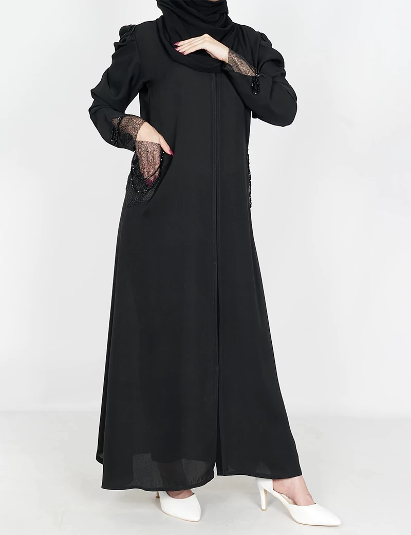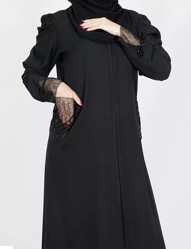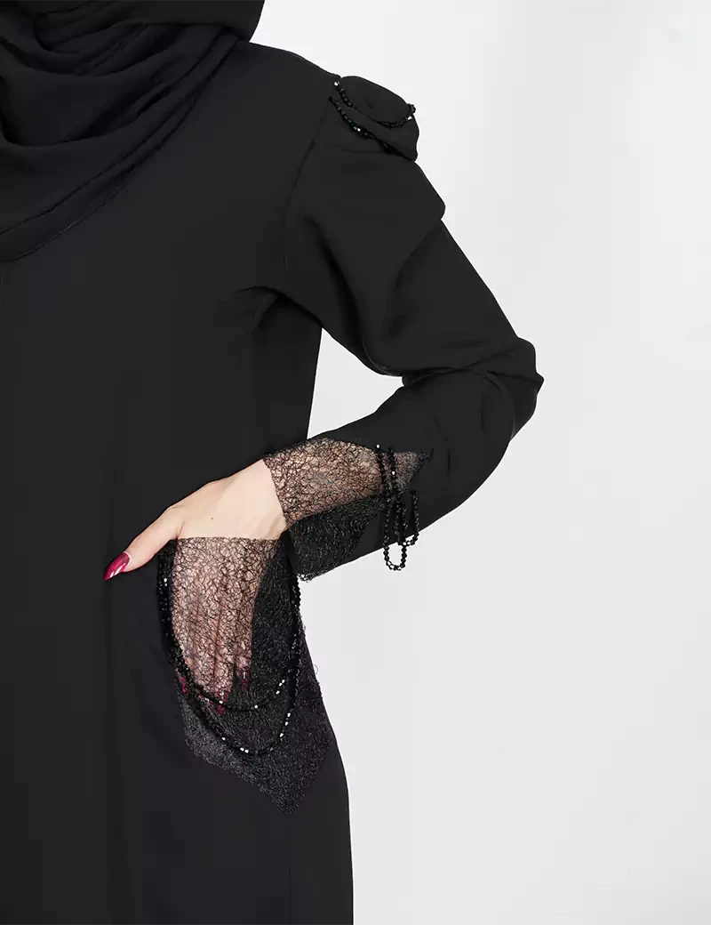 نوع القماش : مقلمقصة رقبة على شكل سبعة على زرار بالصدر و الباقي مغلقشبك على خرز بالجيوب و الأكمامربطة حزام بالخصر |