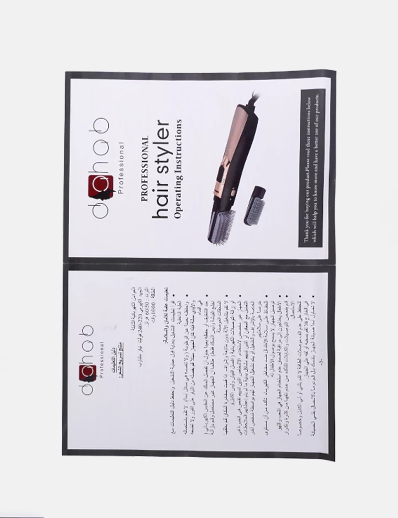 دليل التعليمات:العوامل الكهربائية الثابتة:الجهد الكهربي 220-240 فولت تيار متناوبالتردد: 50/60 هرتزالطاقة: 1000 واتتعليمات عامة للأمان والسلامة:اقراء تعليمات التشغيل بعناية قبل عملية التشغيل واحفظ دليل التعليات مع العلبة الداخلية .- احفظ المنتج بعيدا عن الرطوبة (ولا تغمسه في سائل ابداً) .- لا تقم باستعماله والأيدي مبللة فإذا كان الجهاز مبتلا قم بفصله من التيار على الفور ولا تضعه في الماء.- عند التنظيف أو حفظه بعيدا حاول أن تفصل السلك عن المقبس الكهربائي (اخلع الفيشة وليس السلك فقط) طالما أن الجهاز غير مستعمل وقم بإزالة الملحقات الموصلة.- لاتقم بتشغيل الألة بدون متابعة وإشراف . إذا قمت بمغادرة المكان قم بغلقها أو إزالة التوصيلات الكهربائية (أفصل الفيش وليس الكابل).- الجهاز غير مخصص لاستخدام الأشخاص الذي لديهم نقص في الخبرة في التعامل مع المعادن أو الذين لديهم مشاكل بدنية ما لم يتم إعطائهم الملاحظات الخاصة بالإشراف والتشغيل أو يتم تشغيل الجهاز لهم بواسطة شخص آخر حرصا على سلامتهم.- للحفاظ على سلامة الأطفال ضد مخاطر الكهرباء تأكد من أن مستوى توصيل الجهاز لا يسمح بوصل الأطفال له.- الأطفال يحتاجون إلى مراقبة لضمان عدم استخدام الجهاز في اللعب واللهو.- فم بفحص التوصيلات والكابلات للتأكد من عدم تلفها من كثرة وتكرار الاستعمال.- للحفاظ على عدم تلف موصلات الطاقة لا تقم بثني أو لي الكابل وخصوصا في الخارج فلا تقم بسحبه أو لفه على الجهاز.- لا تحاول أبدا صيانة الجهاز بنفسك بل قم دوما بالاتصال بفني الصيانة.رقم المودبل: 6980016819015 |