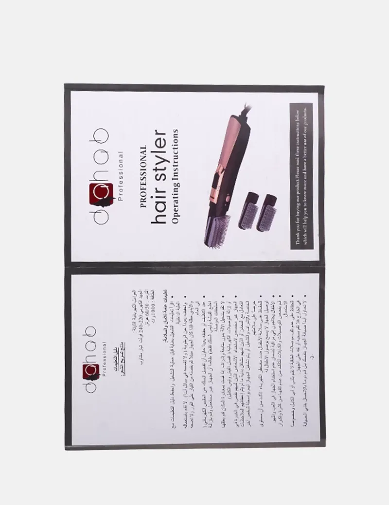 دليل التعليمات:العوامل الكهربائية الثابتة:الجهد الكهربي 220-240 فولت تيار متناوبالتردد: 50/60 هرتزالطاقة: 1000 واتتعليمات عامة للأمان والسلامة:اقراء تعليمات التشغيل بعناية قبل عملية التشغيل واحفظ دليل التعليات مع العلبة الداخلية .- احفظ المنتج بعيدا عن الرطوبة (ولا تغمسه في سائل ابداً) .- لا تقم باستعماله والأيدي مبللة فإذا كان الجهاز مبتلا قم بفصله من التيار على الفور ولا تضعه في الماء.- عند التنظيف أو حفظه بعيدا حاول أن تفصل السلك عن المقبس الكهربائي (اخلع الفيشة وليس السلك فقط) طالما أن الجهاز غير مستعمل وقم بإزالة الملحقات الموصلة.- لاتقم بتشغيل الألة بدون متابعة وإشراف . إذا قمت بمغادرة المكان قم بغلقها أو إزالة التوصيلات الكهربائية (أفصل الفيش وليس الكابل).- الجهاز غير مخصص لاستخدام الأشخاص الذي لديهم نقص في الخبرة في التعامل مع المعادن أو الذين لديهم مشاكل بدنية ما لم يتم إعطائهم الملاحظات الخاصة بالإشراف والتشغيل أو يتم تشغيل الجهاز لهم بواسطة شخص آخر حرصا على سلامتهم.- للحفاظ على سلامة الأطفال ضد مخاطر الكهرباء تأكد من أن مستوى توصيل الجهاز لا يسمح بوصل الأطفال له.- الأطفال يحتاجون إلى مراقبة لضمان عدم استخدام الجهاز في اللعب واللهو.- فم بفحص التوصيلات والكابلات للتأكد من عدم تلفها من كثرة وتكرار الاستعمال.- للحفاظ على عدم تلف موصلات الطاقة لا تقم بثني أو لي الكابل وخصوصا في الخارج فلا تقم بسحبه أو لفه على الجهاز.- لا تحاول أبدا صيانة الجهاز بنفسك بل قم دوما بالاتصال بفني الصيانة.-----------رقم المودبل: 6980016819022 |