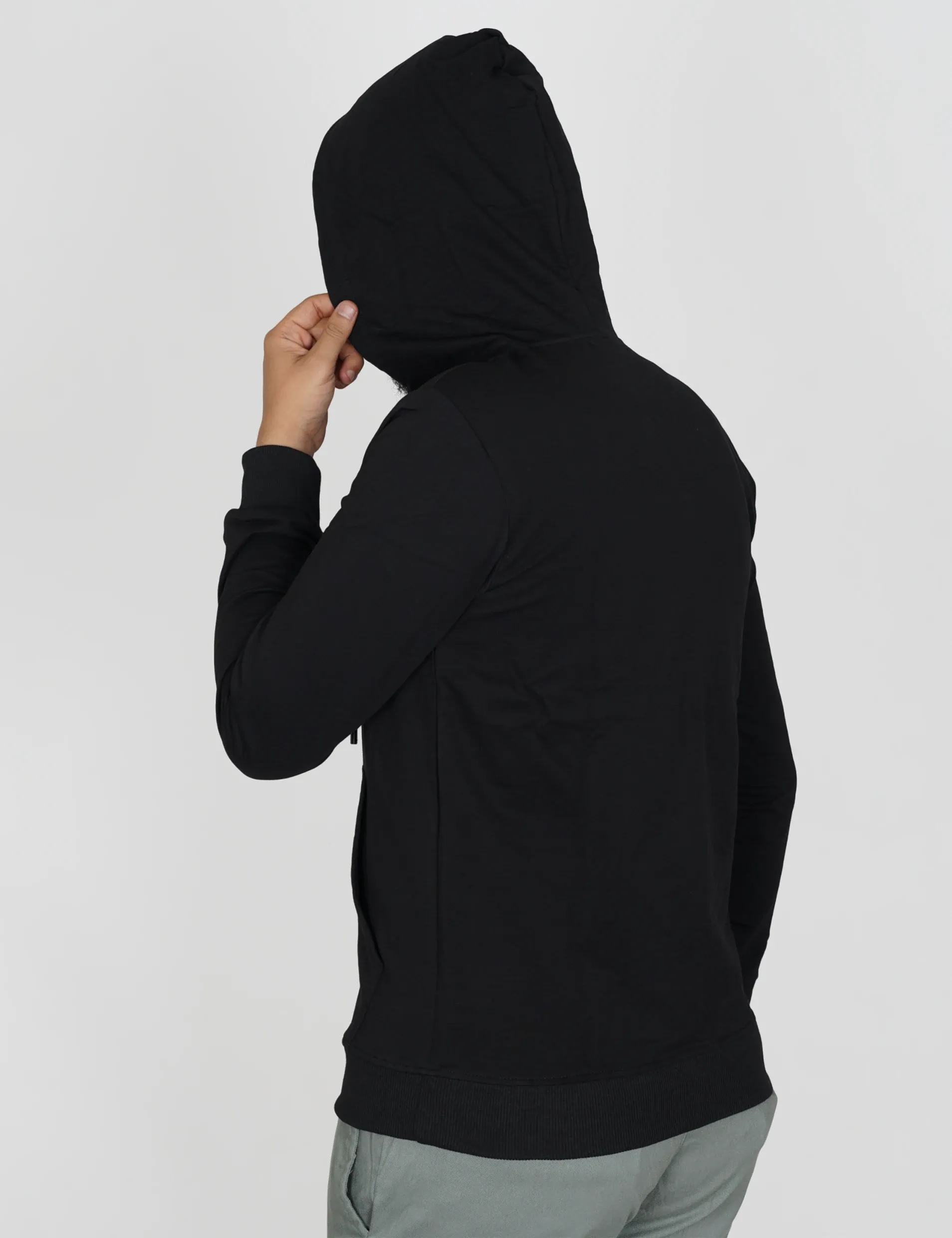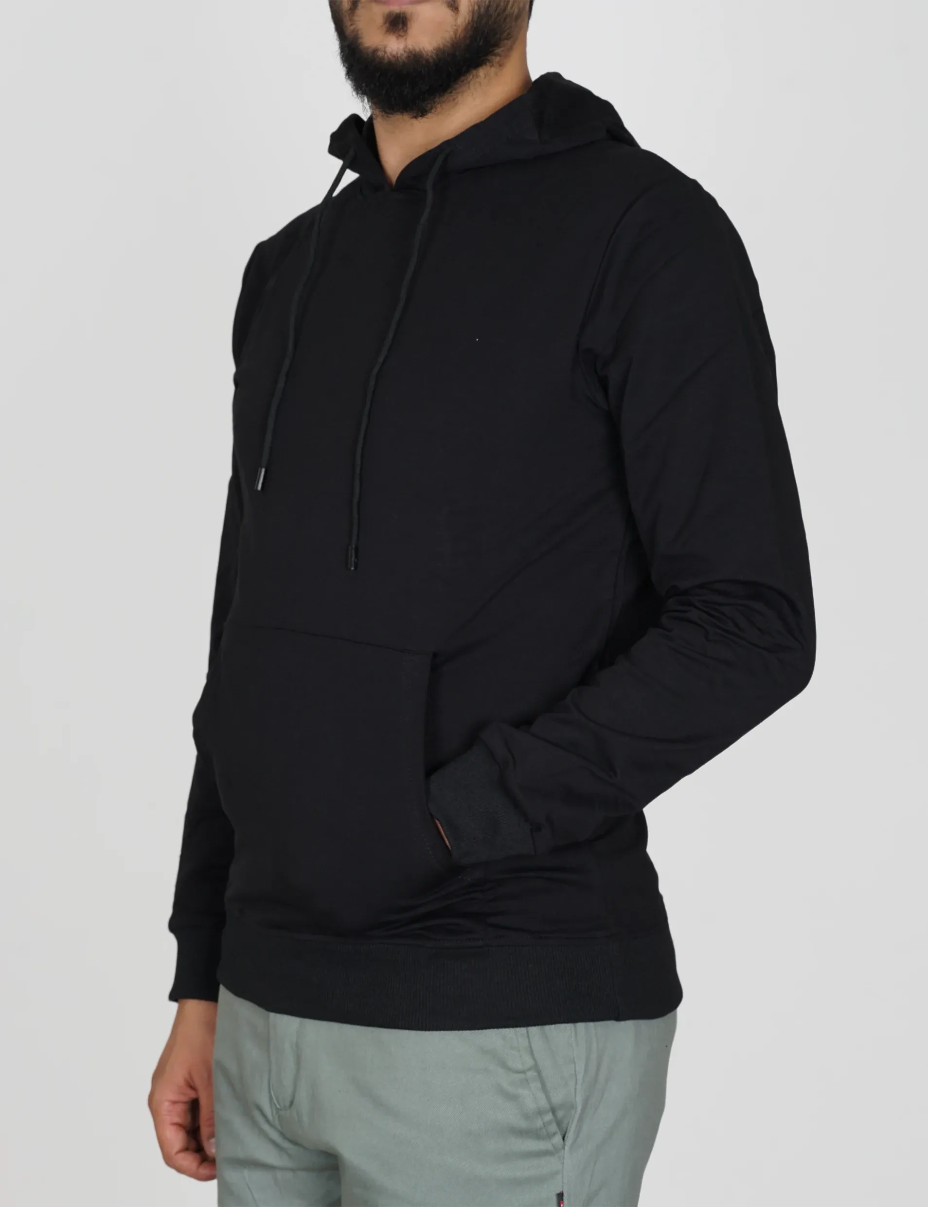 بلوفر شبابي صافيالتفاصيل :1. اللون أسود2. أكمام طويلة على ربل في الأطراف3. جيب في الأمام مفتوح من الجهتين4. غطاء رأس على ربطةالقماش :74.3% قطن19.9% بوليستر5.8% اليستان الألياف المرنةصنع في الصين |