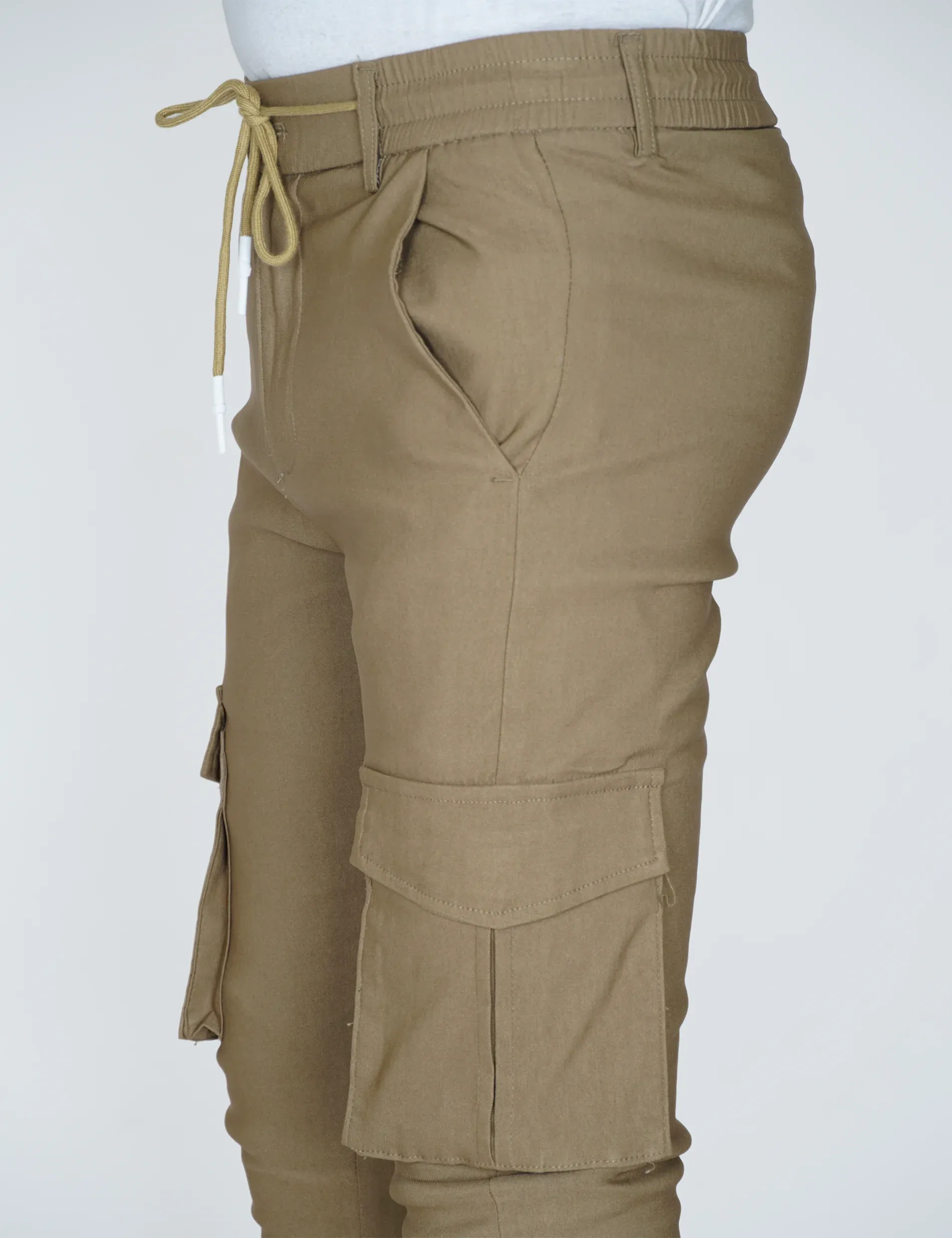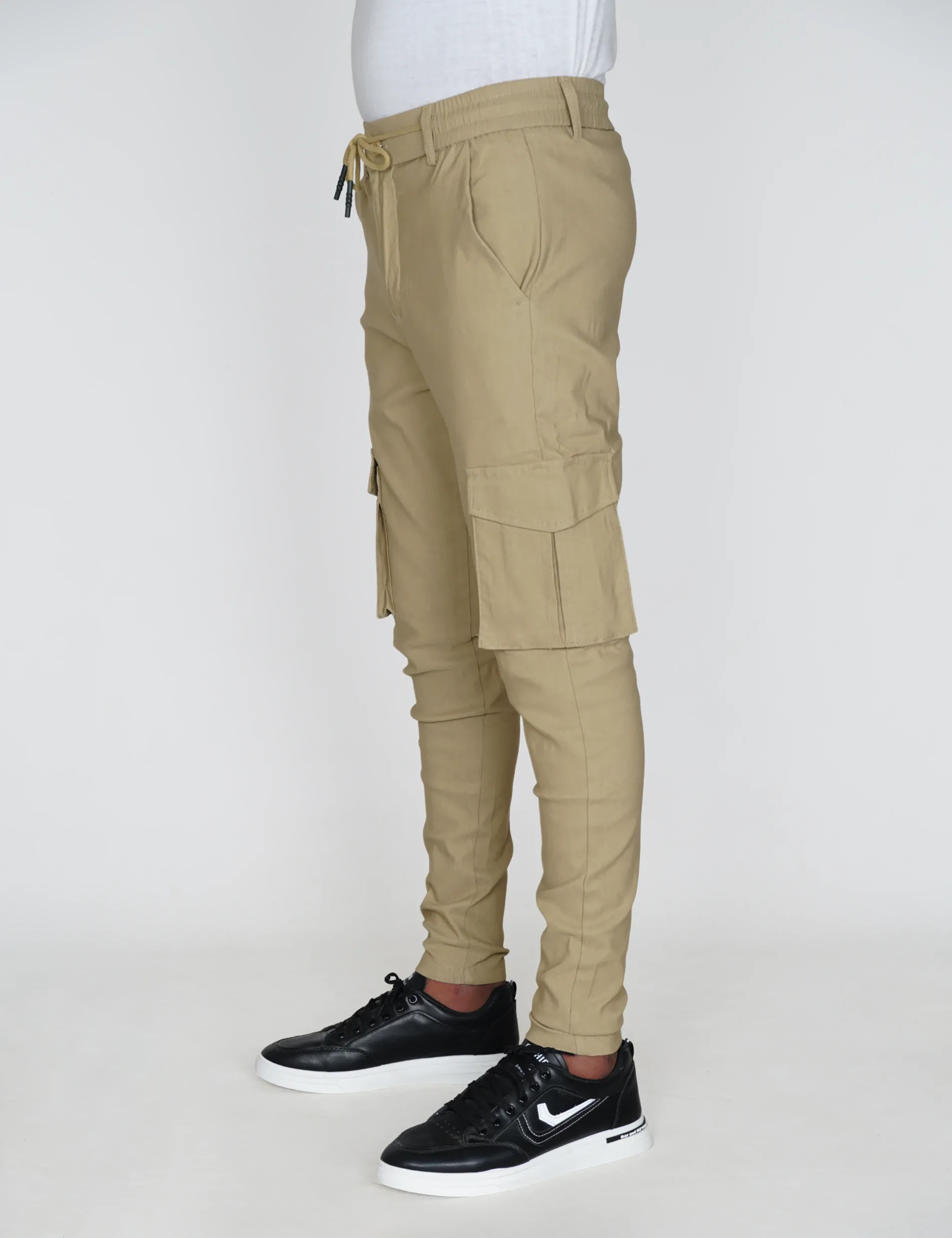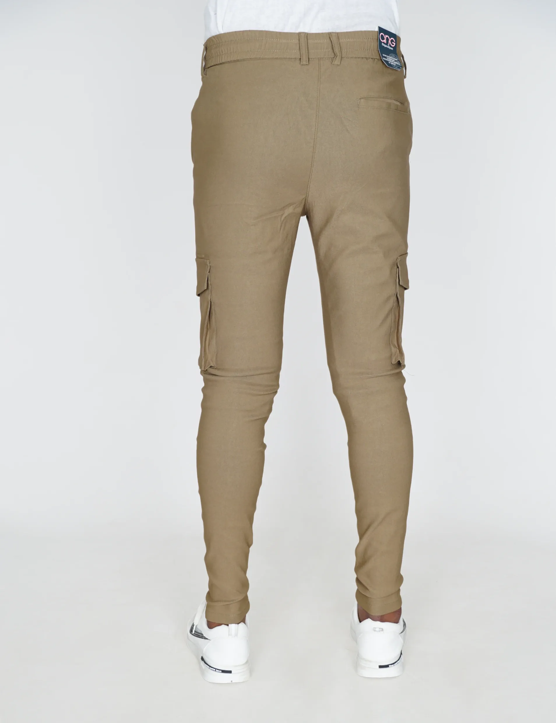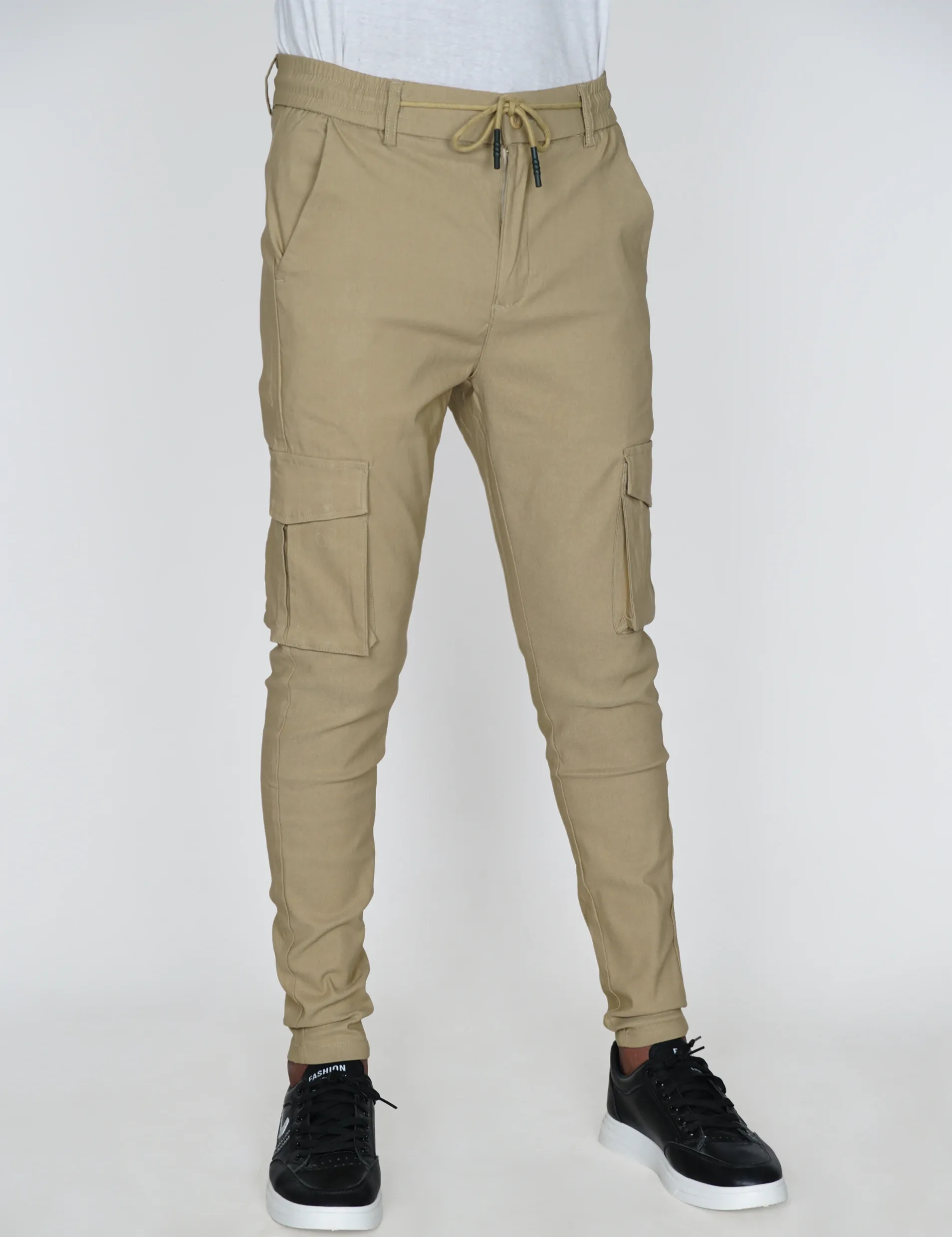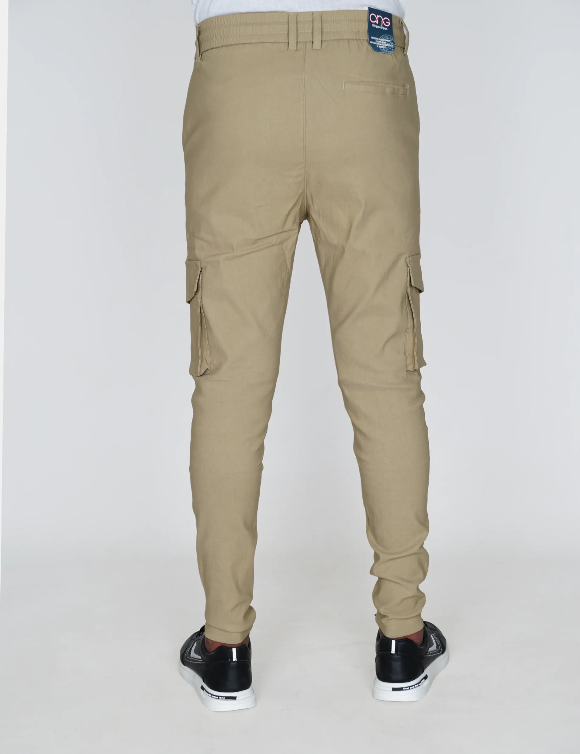 رباط في الخصر بالاضافة الى خمسة جيوب واحد في الخلف واثنين جيوب مخفية في الأمام واثنين عند الركبة