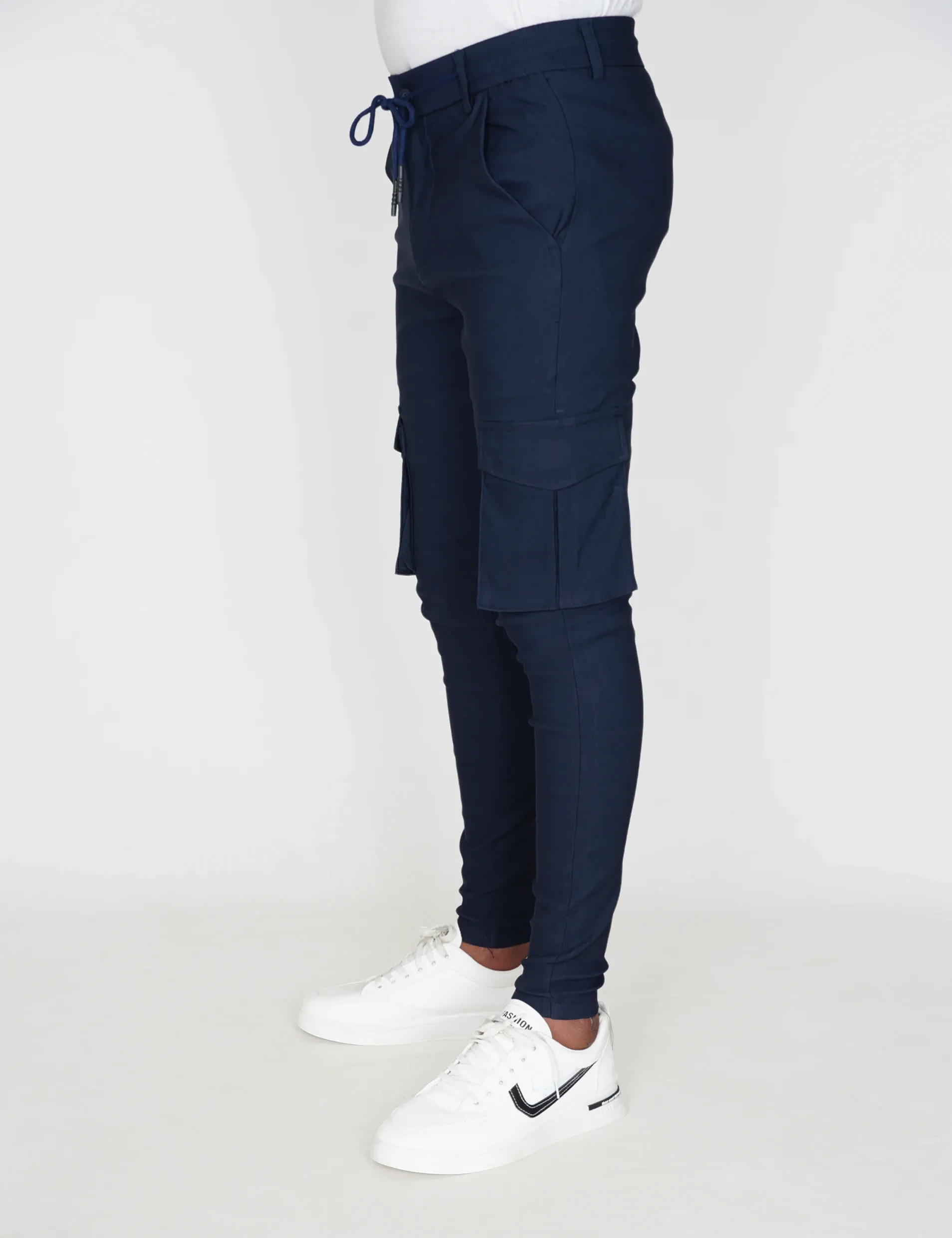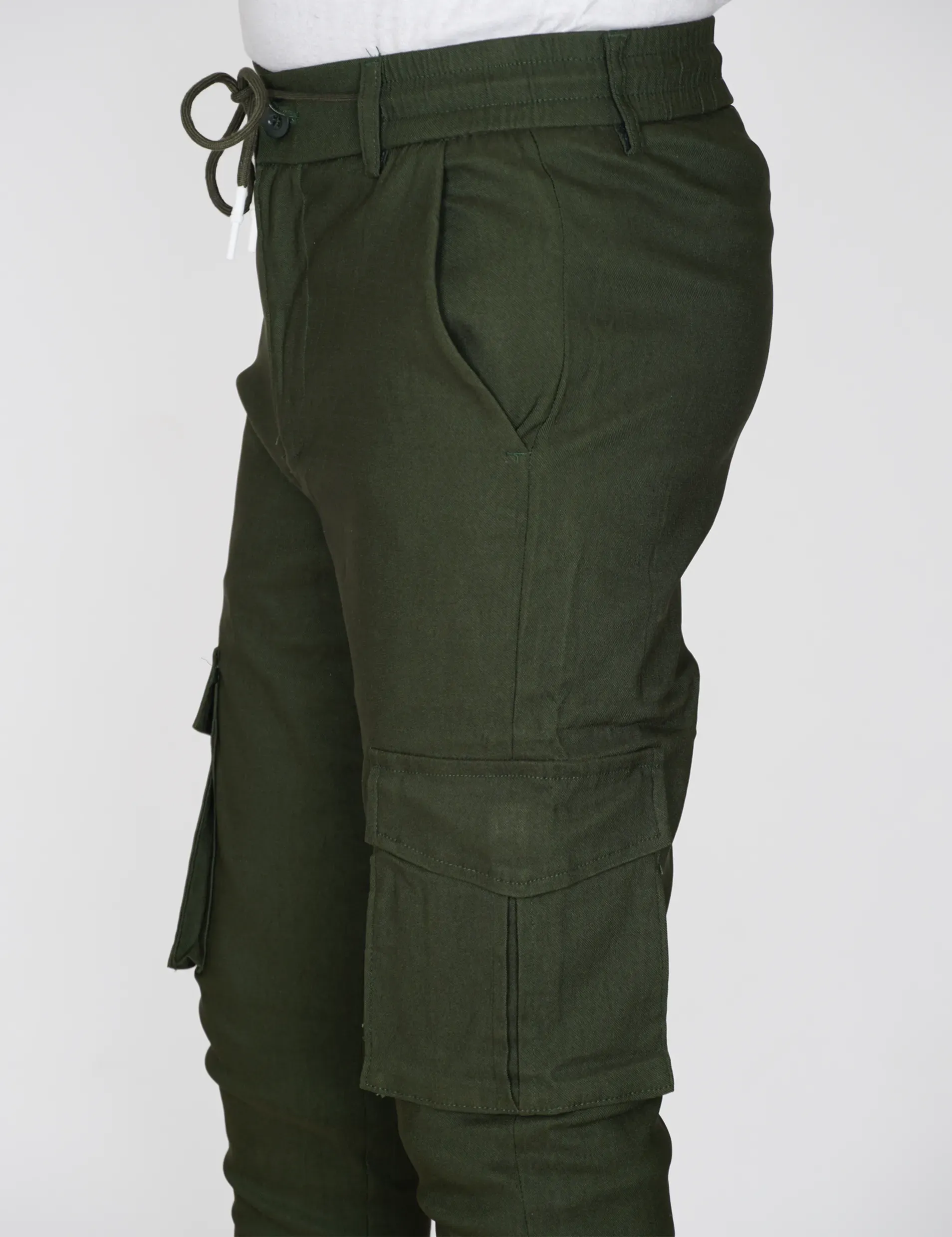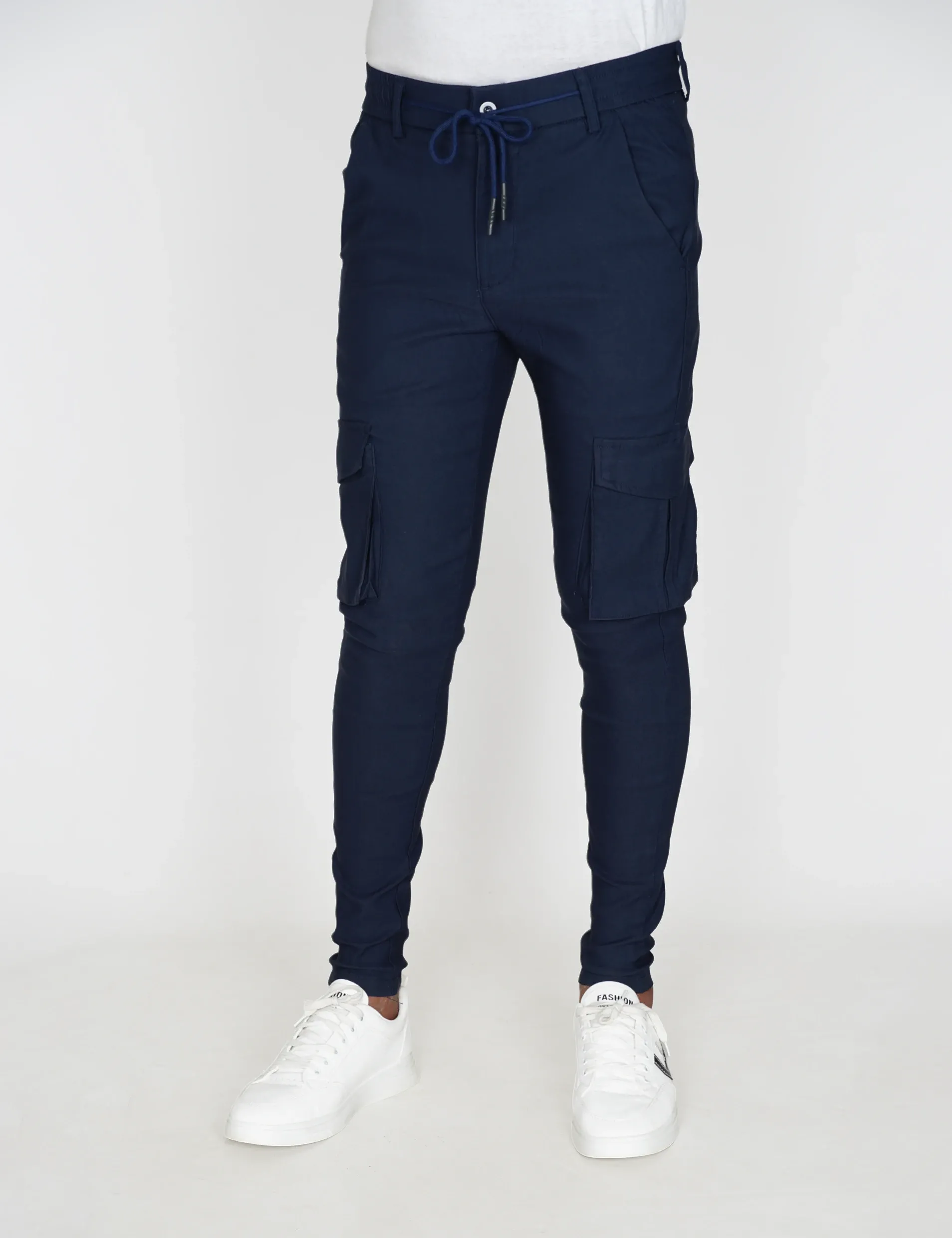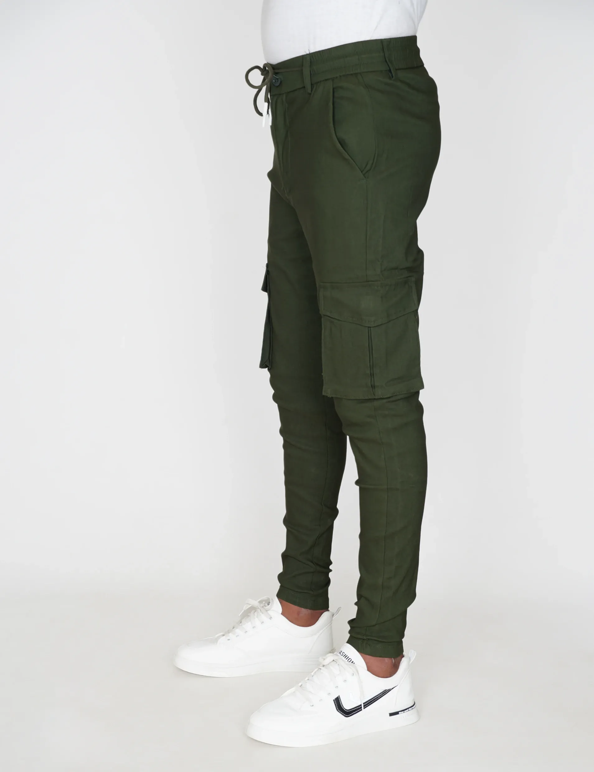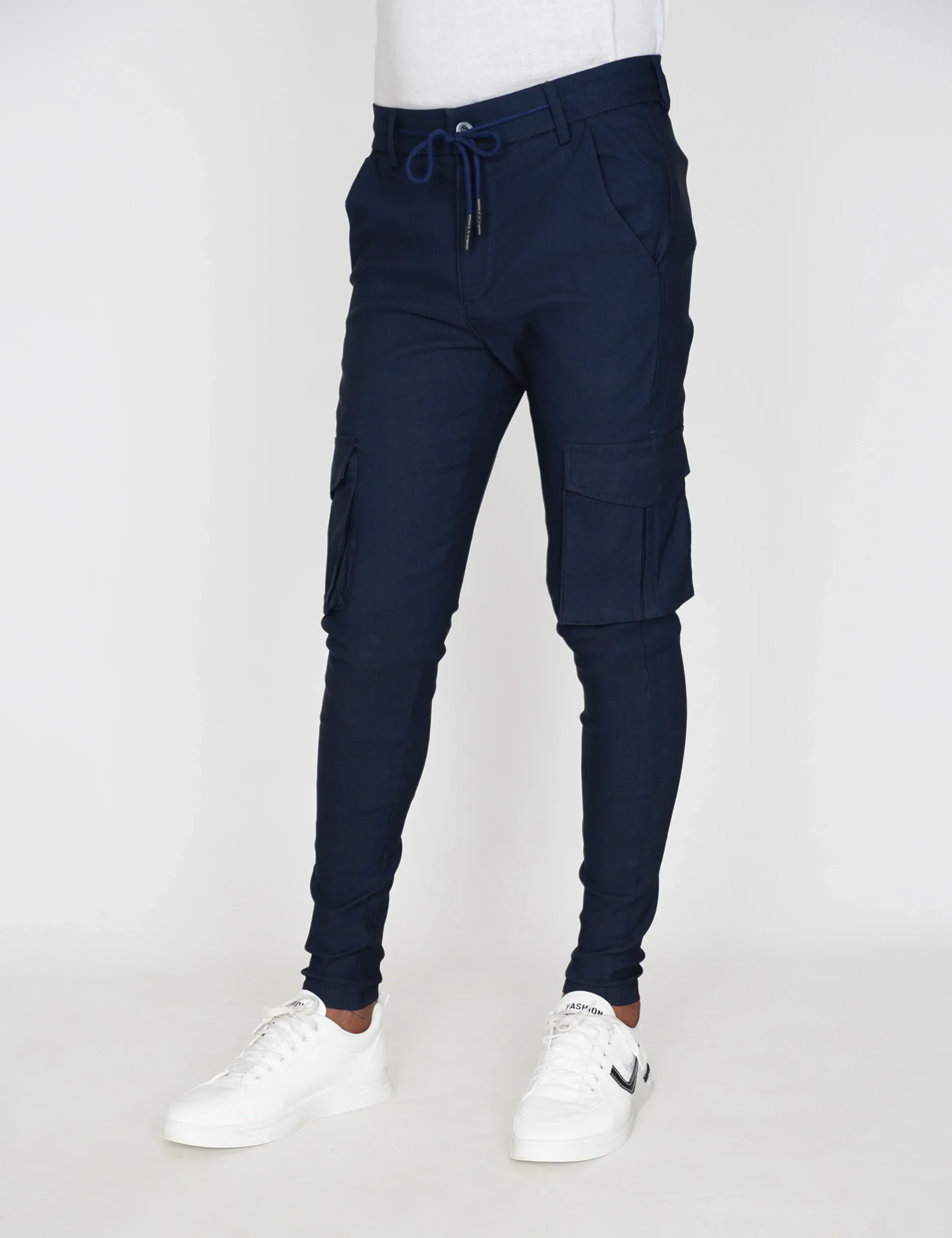 رباط في الخصر بالاضافة الى خمسة جيوب واحد في الخلف واثنين جيوب مخفية في الأمام واثنين عند الركبة