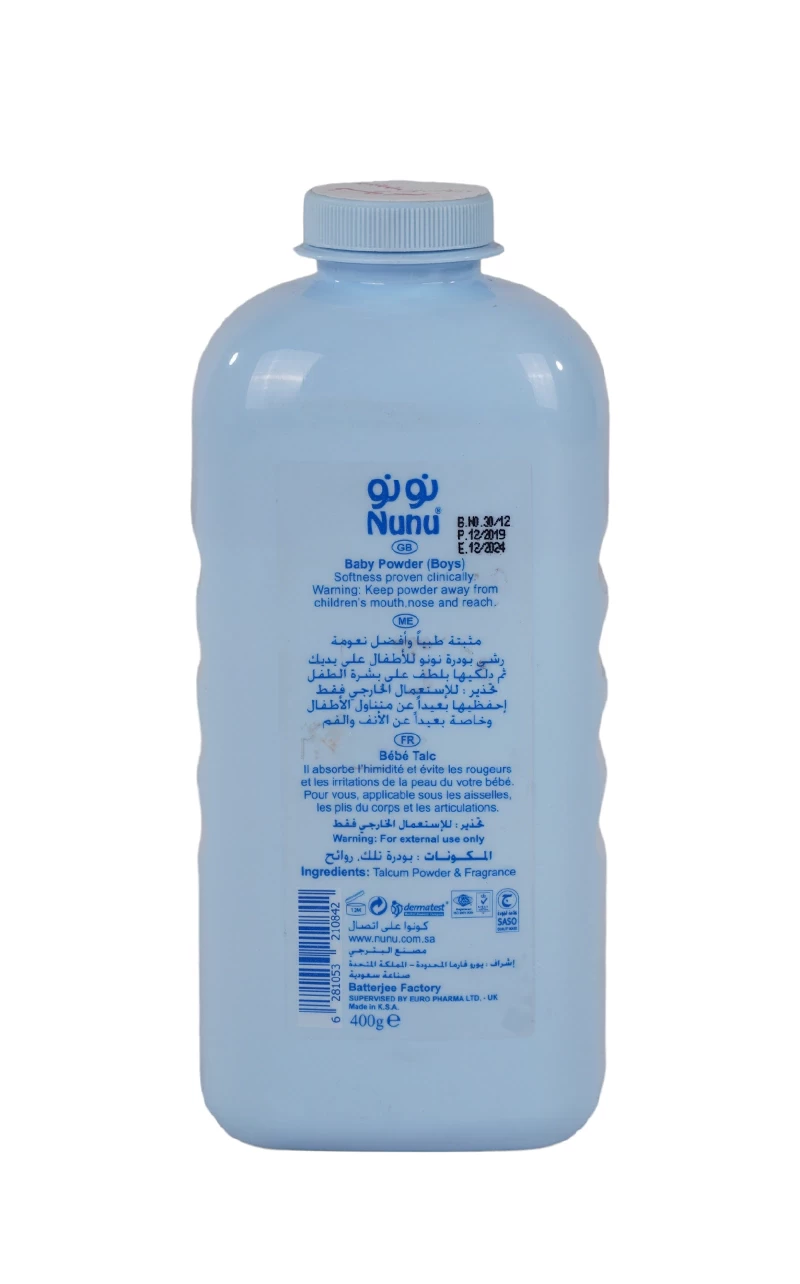 نونو بودرة الأطفال هي منتج يستخدم للعناية ببشرة الأطفال الحساسة. تحتوي على مسحوق التلك الذي يعتبر مادة امتصاصية ، ويستخدم لتجفيف وتهدئة البشرة والحفاظ على جفافها.تُستخدم بودرة الأطفال من نونو للتخلص من الرطوبة والتعرق في مناطق مثل منطقة الحفاضات والرقبة والإبطين والفخذين. قد تساعد في تقليل احتكاك الجلد والتهيج والطفح الجلدي الناتج عن الرطوبة المستمرة.رقم الموديل : 6281053210842 |