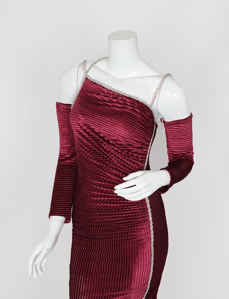 القماش : قطيفة مقلم على قيطان بالرقبة و الجانب اكمام طويلة