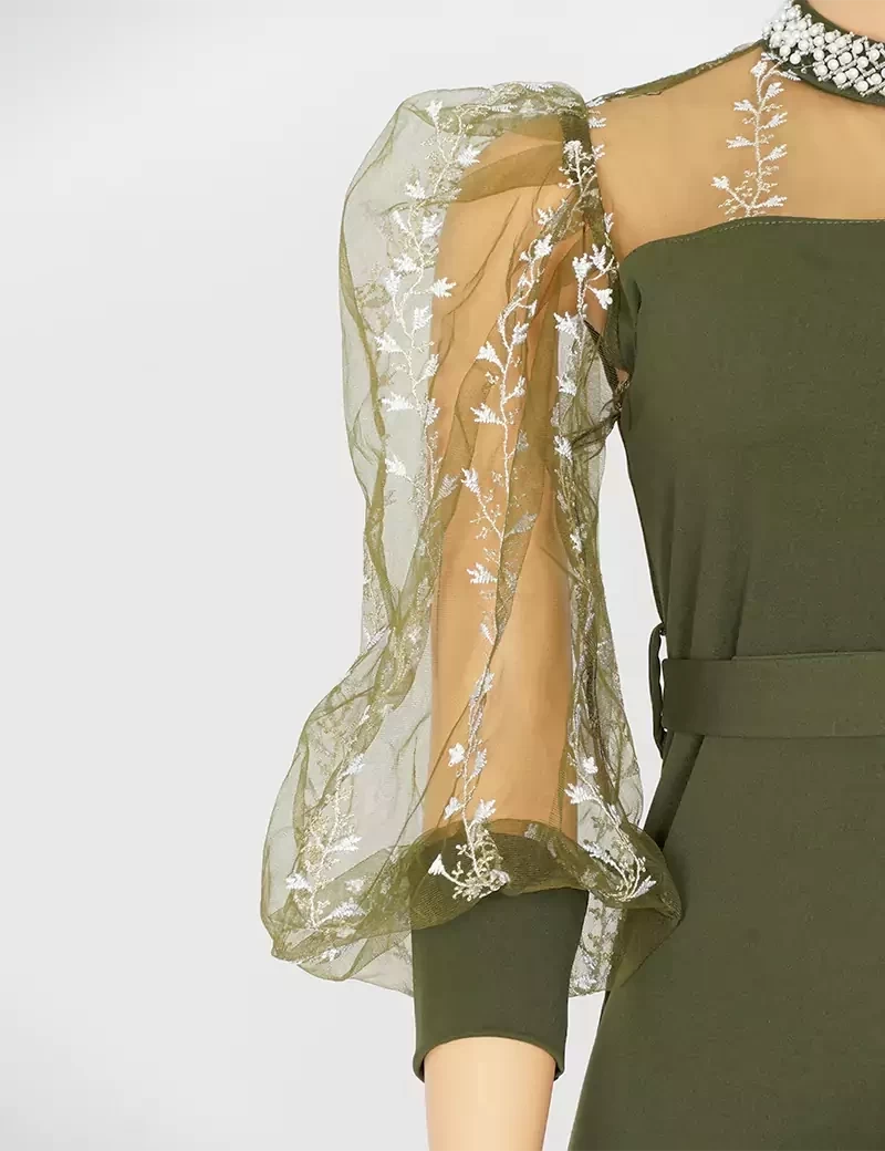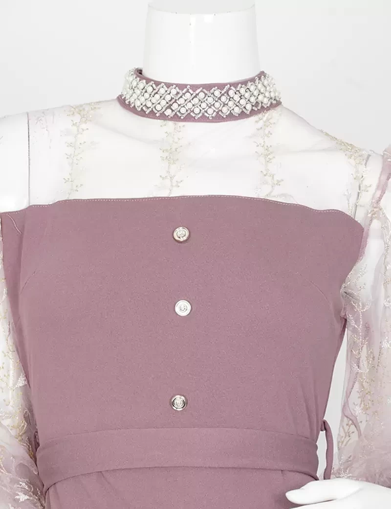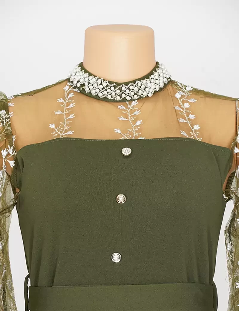و شبك مطرز بالصدر و اليدات