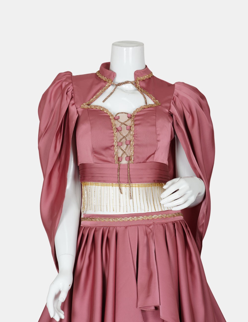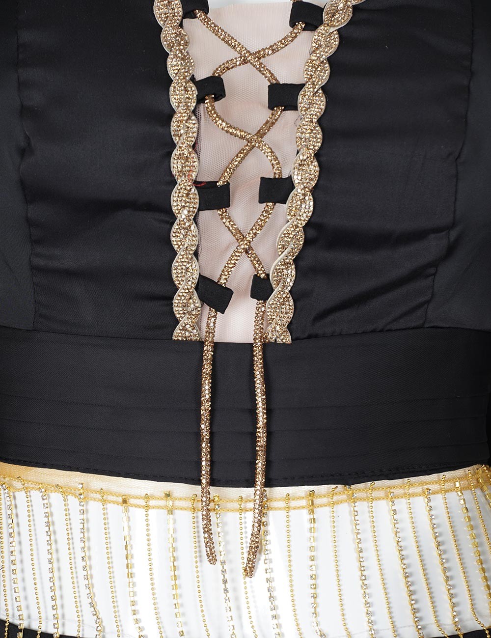 القماش : حرير . مكون من قطتعين بلوزة و فوطة البلوزه : على قيطان و كرستال ويدات على كسرات الفوطة : على قيطان و كرستال على كسرات بالفوطة