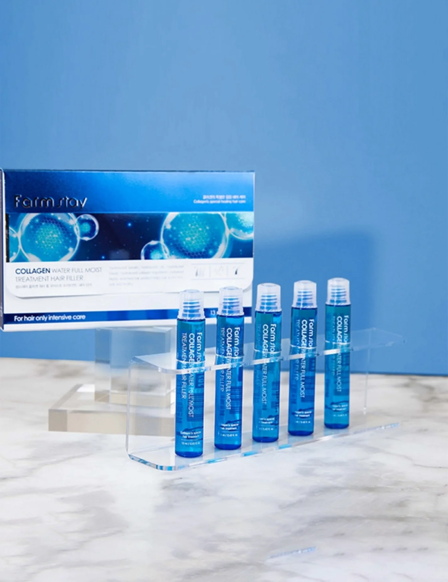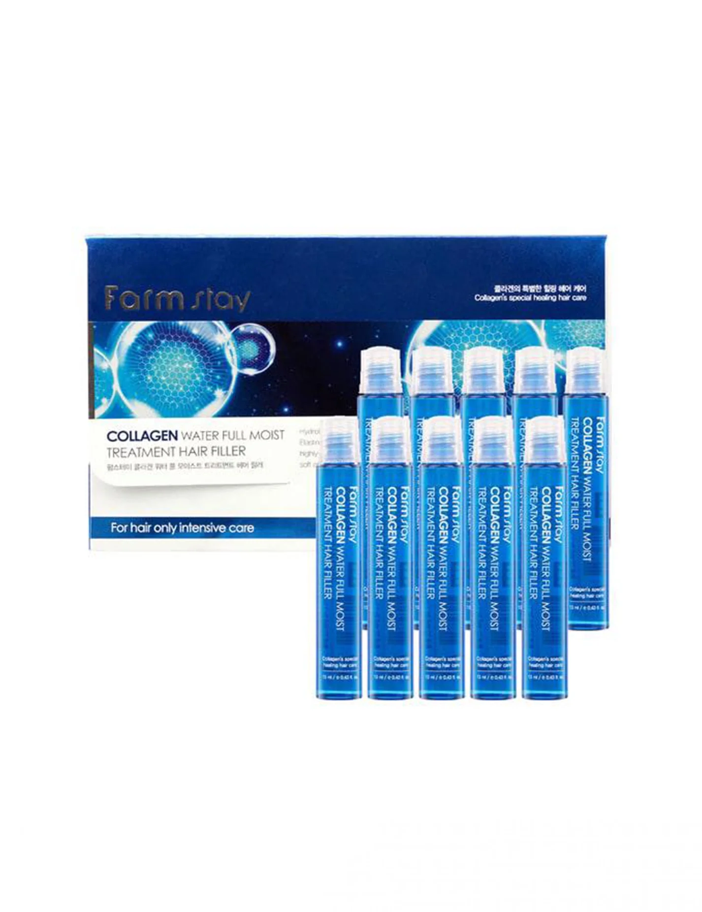 يحتوي فيلر الشعر المائي بالكولاجين من ستاي فارم على الكيراتين والكولاجين البحري المتحلل بالماء الذي يمتصه الشعر بسرعة لتأثير سريع. يعمل الكولاجين والكيراتين على تغذية بشرة الشعر لتقوية غلاف البروتين لتحسين جودة الشعر.