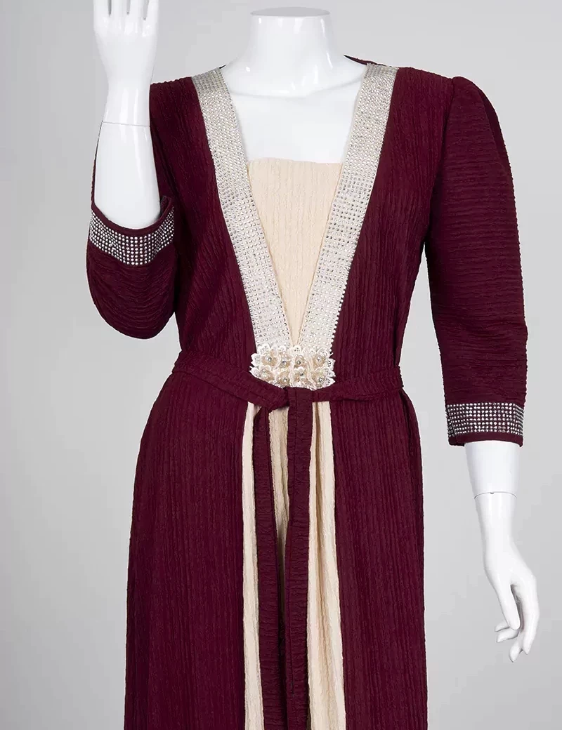 مطرزة من الصدر وأكمام طويلة مطرزة تطريزة خفيفة من الأطراف
