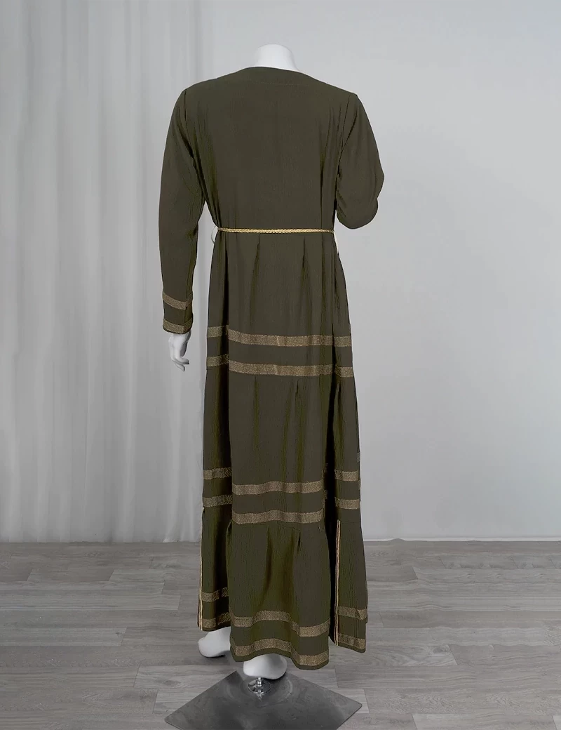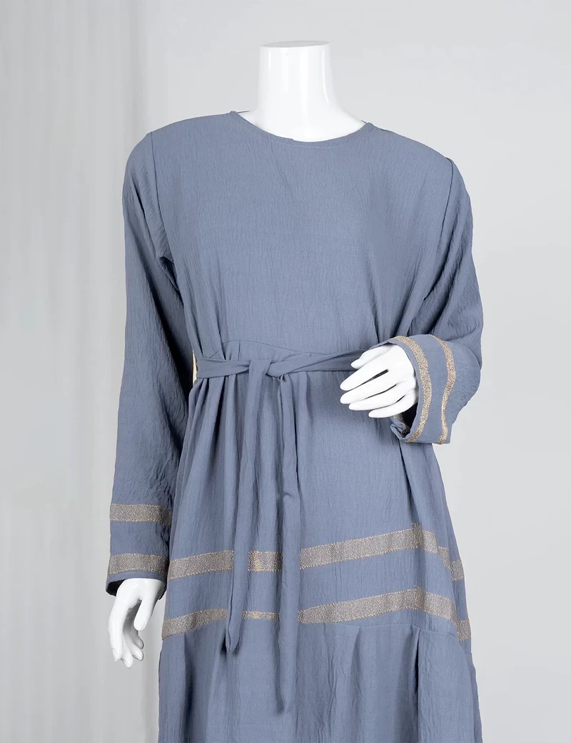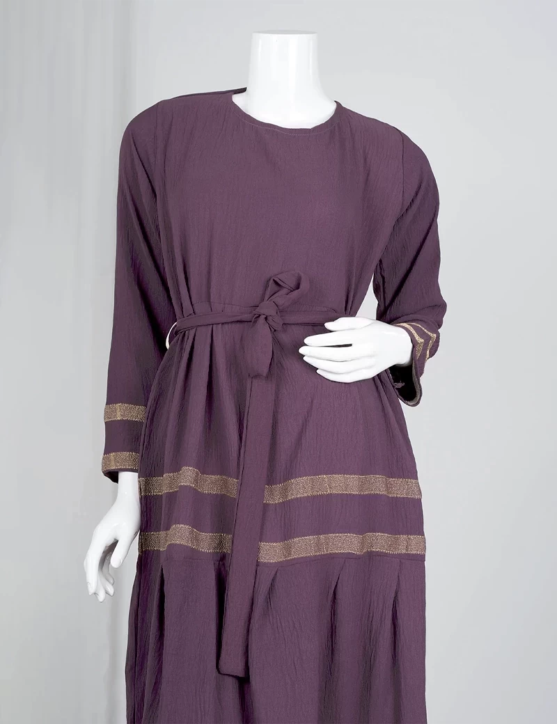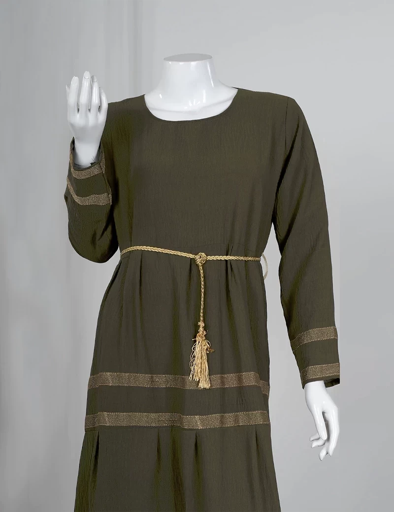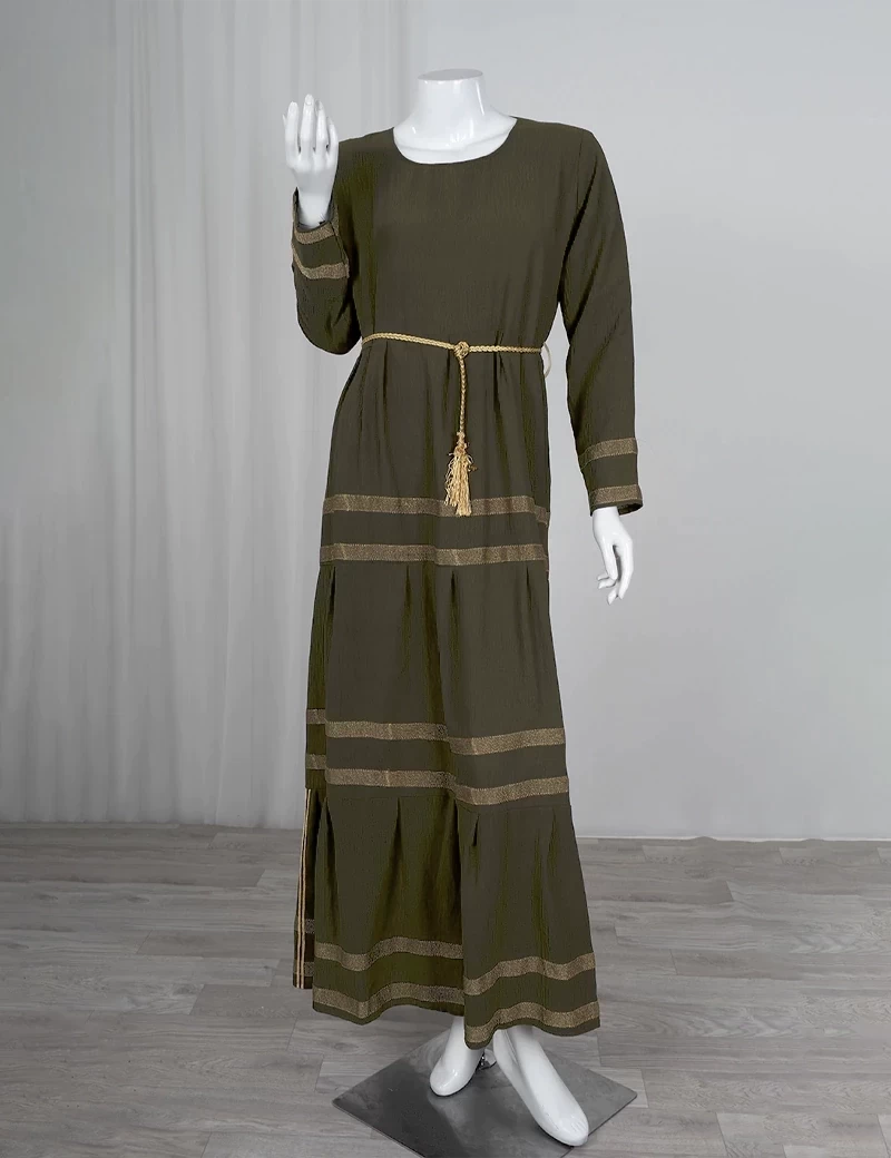 نوع القماش/ اليكراقصة رقبة على شكل دائريالصدر صافيتنورة الجلابية مطرزة بشكل دائريحزام على الخصر. |