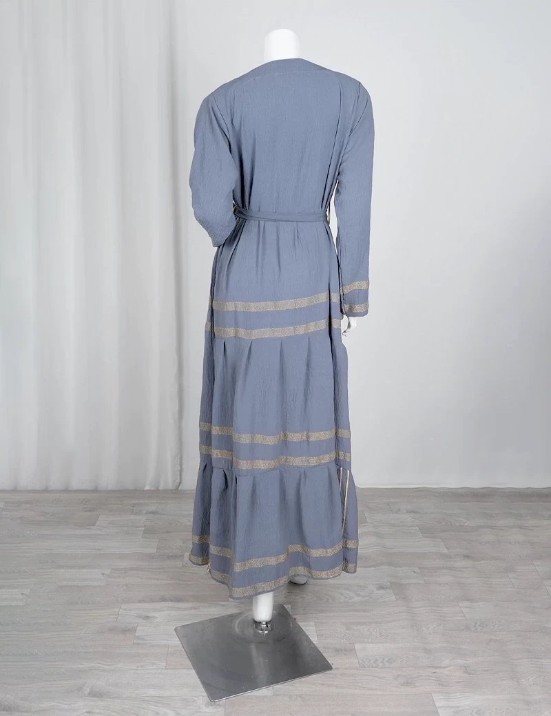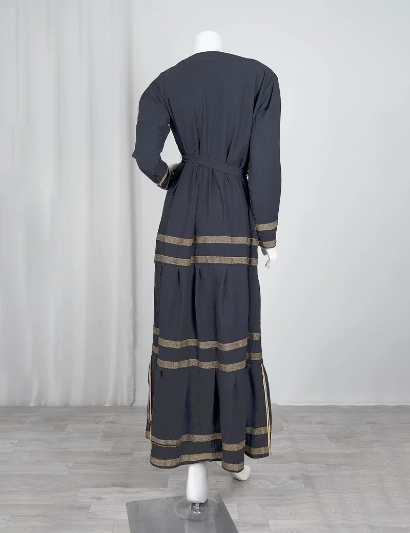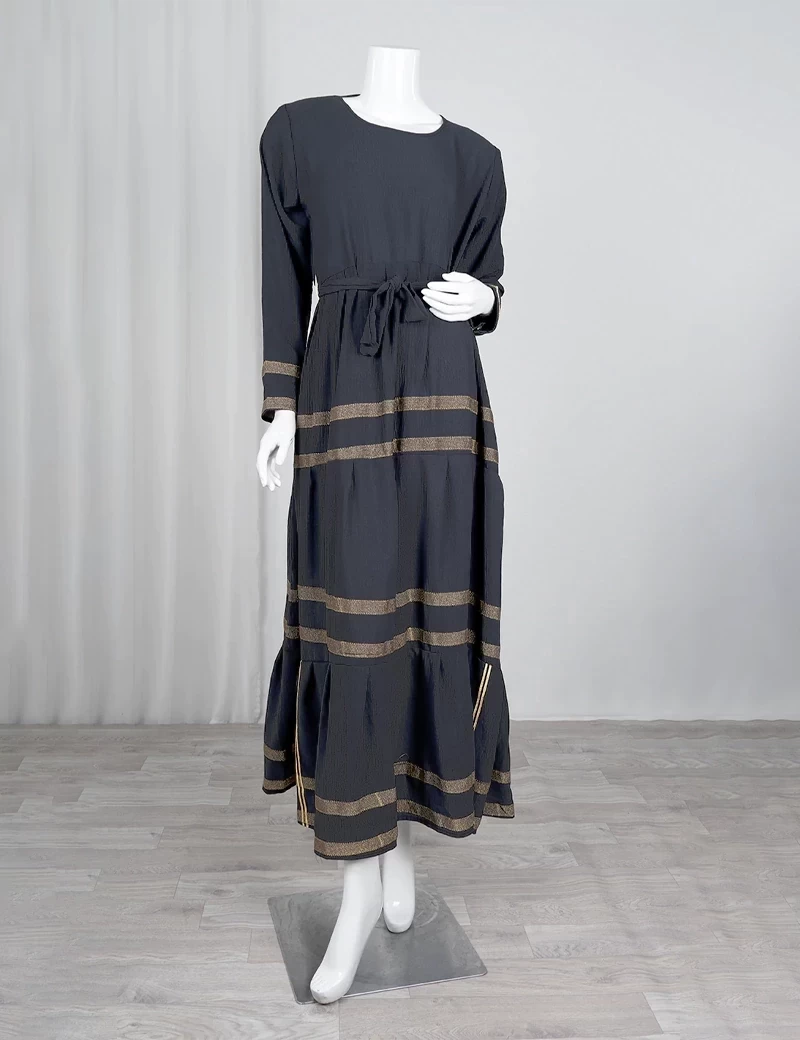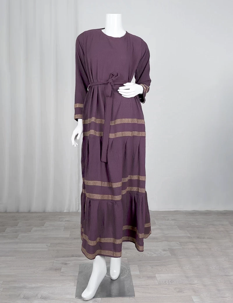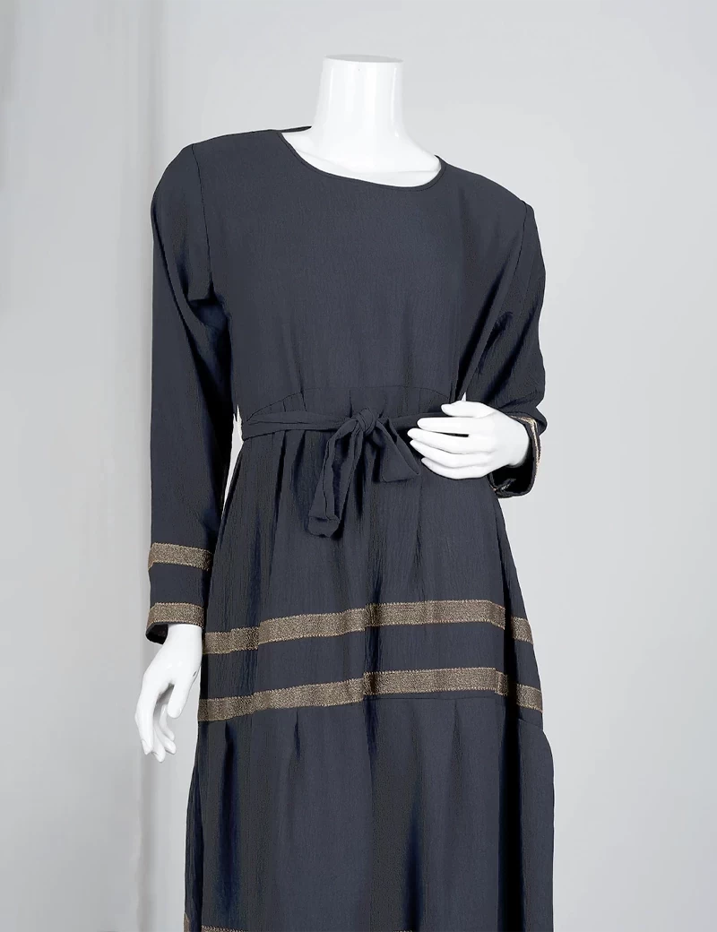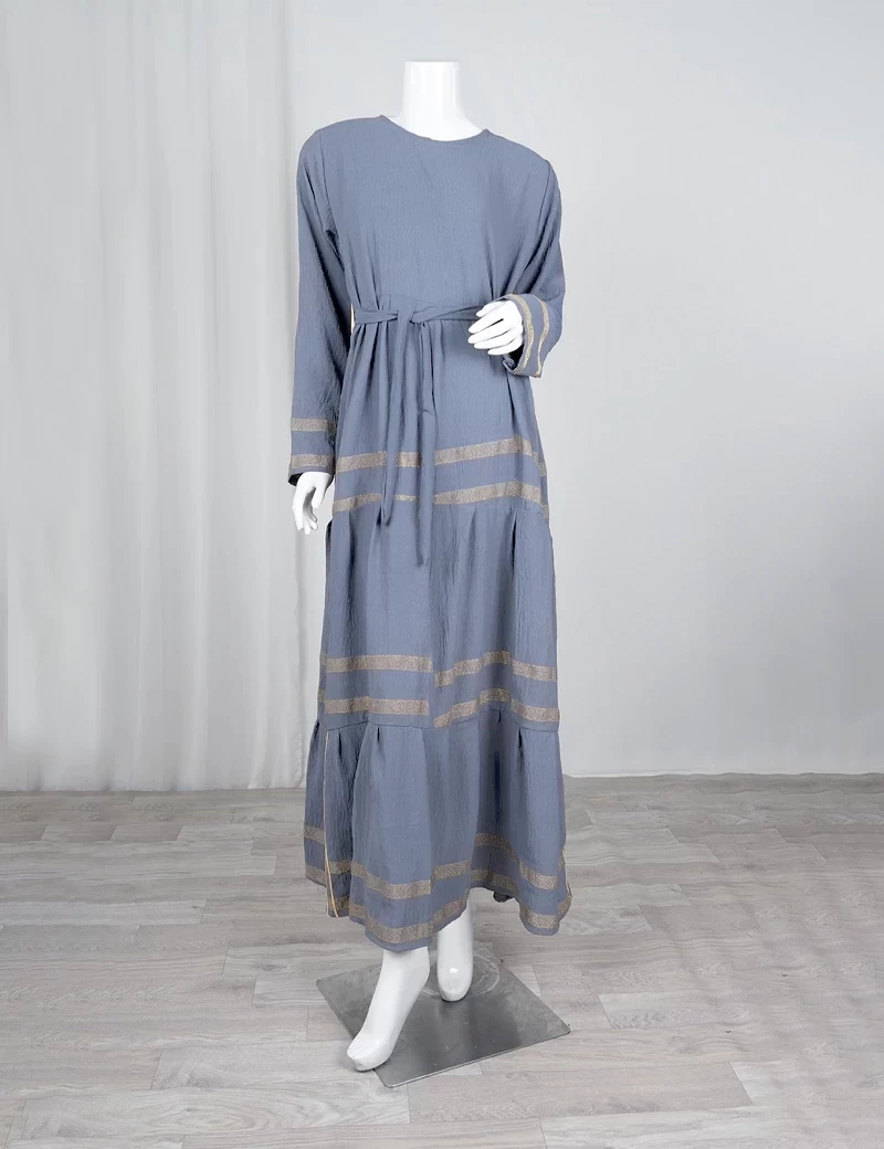 نوع القماش/ اليكراقصة رقبة على شكل دائريالصدر صافيتنورة الجلابية مطرزة بشكل دائريحزام على الخصر. |