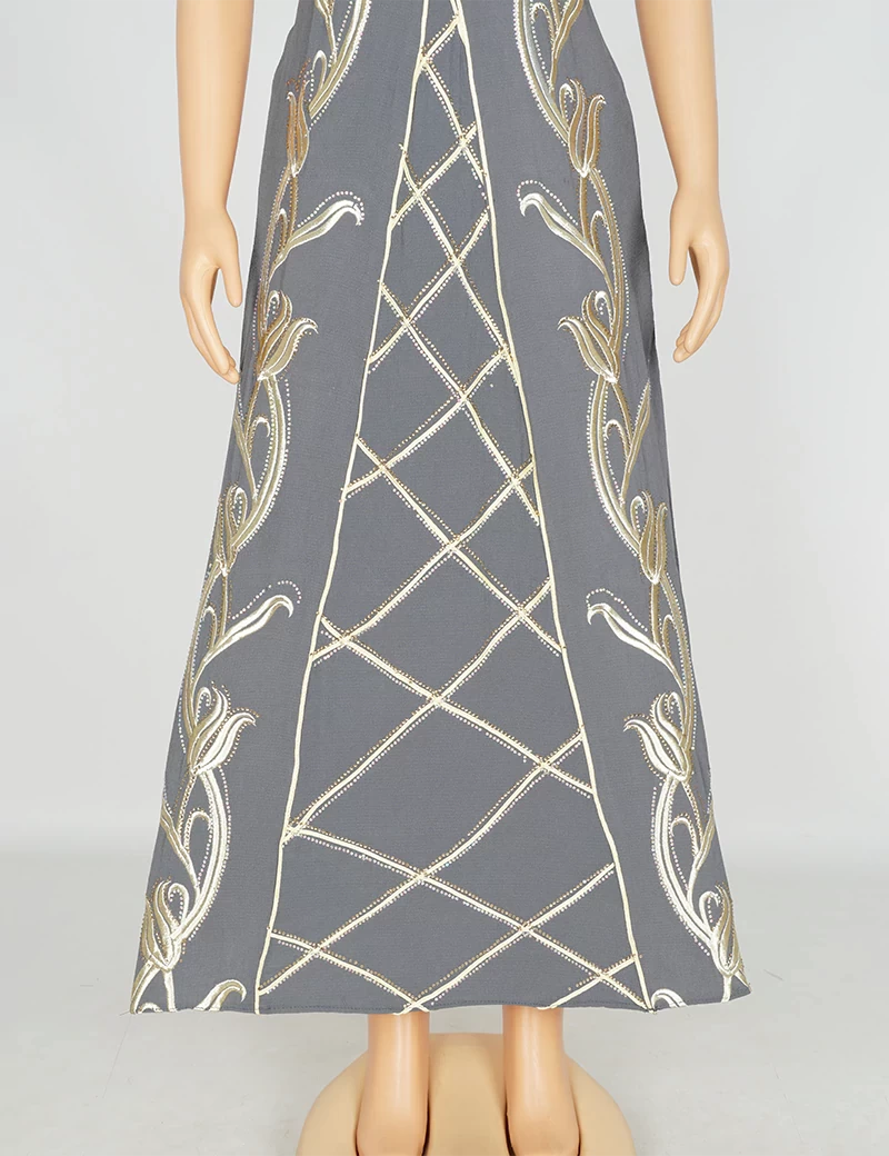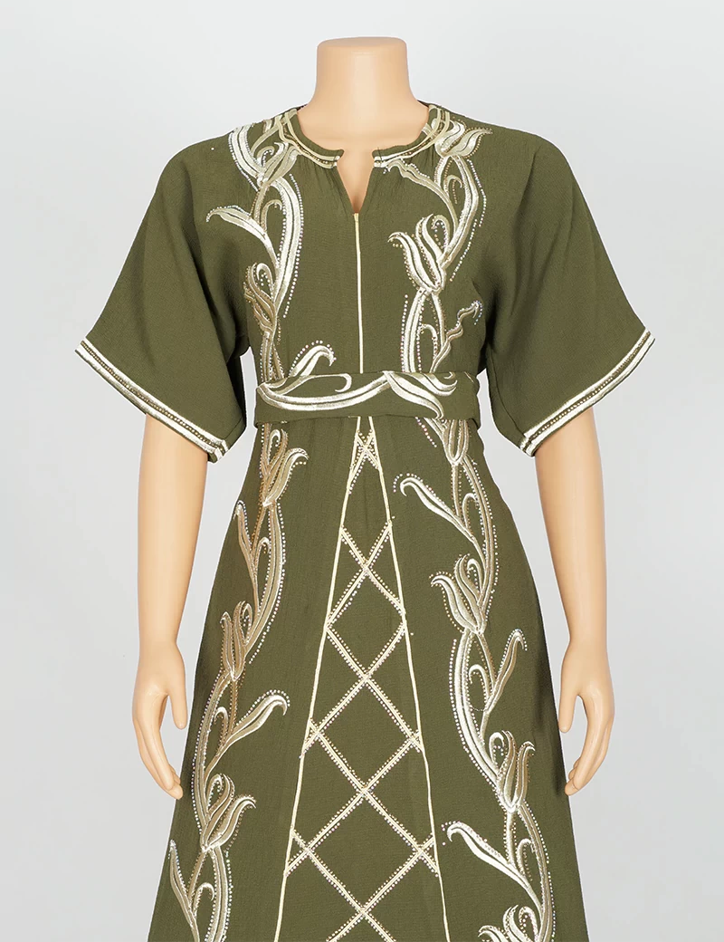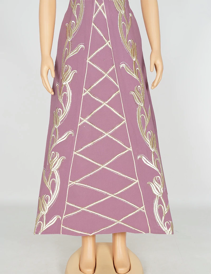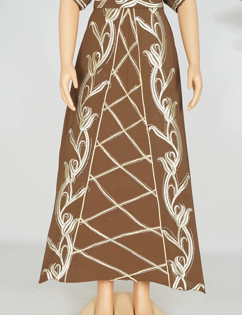 مطررزة من الأمام بالكامل الصدر وتنورة الجلابية