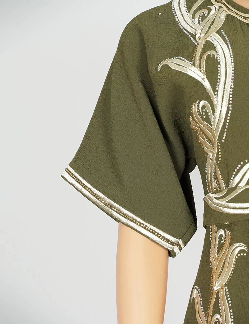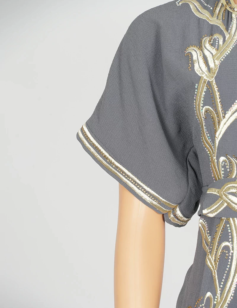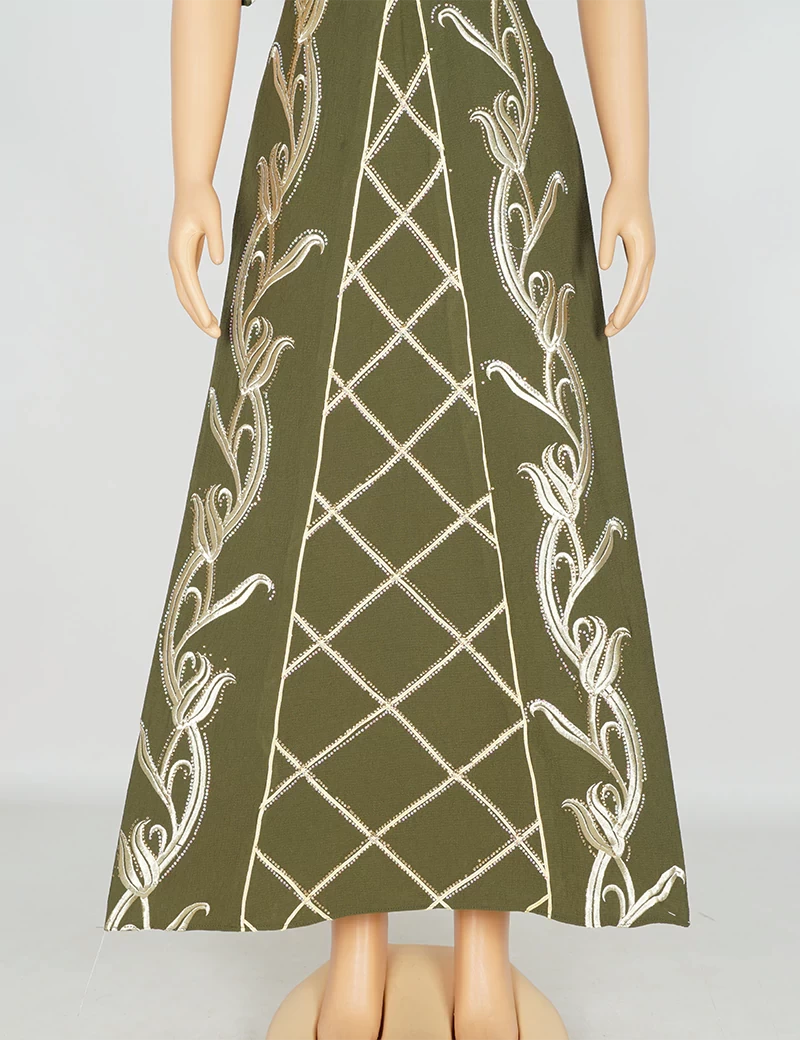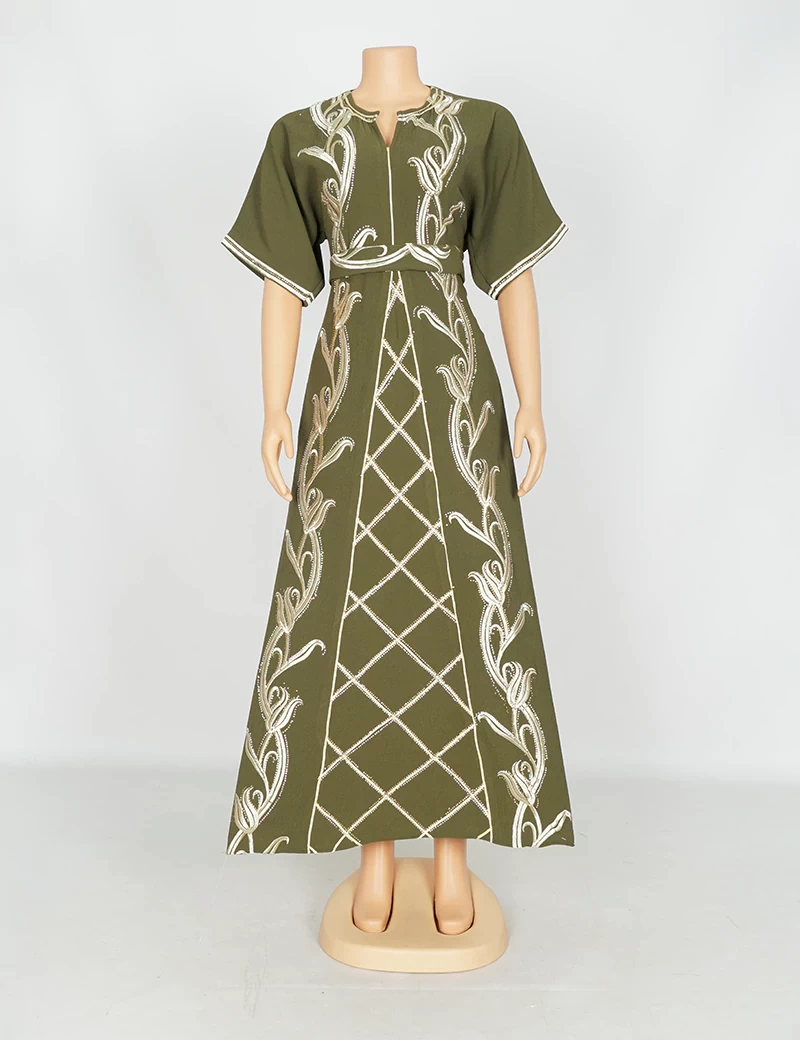 مطررزة من الأمام بالكامل الصدر وتنورة الجلابية