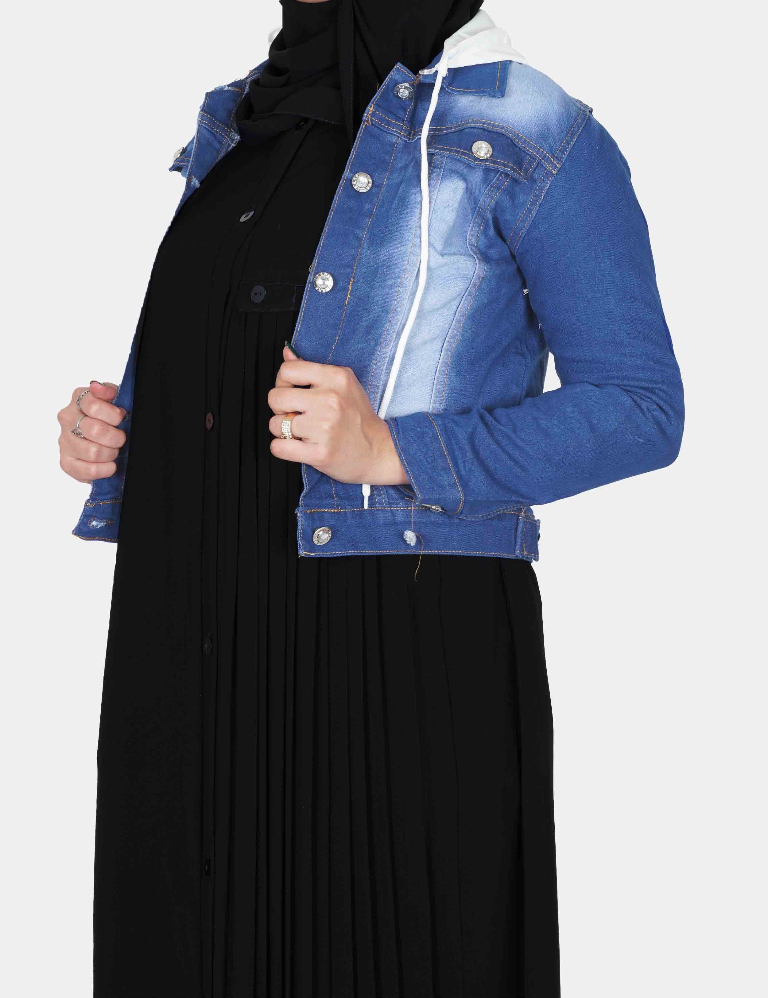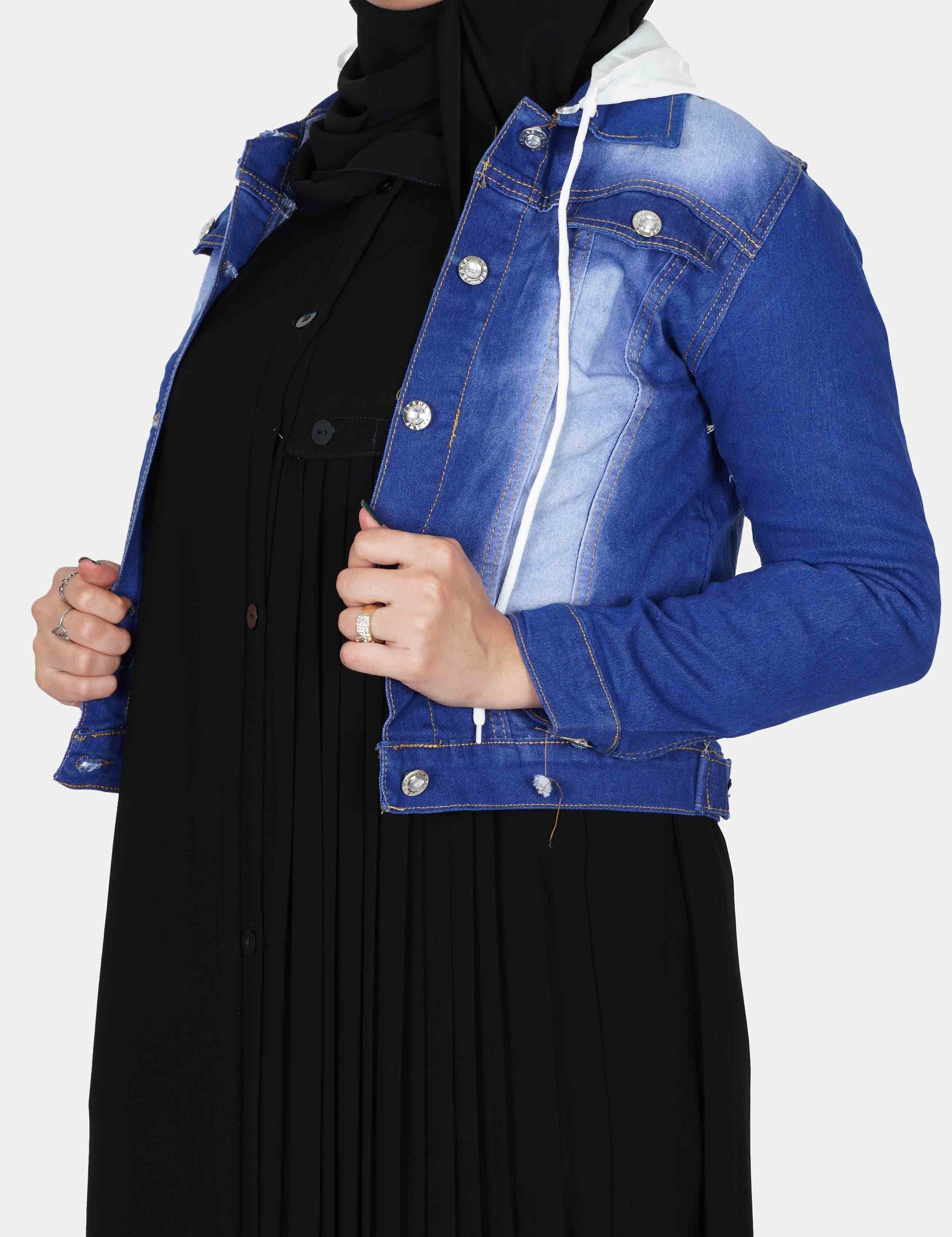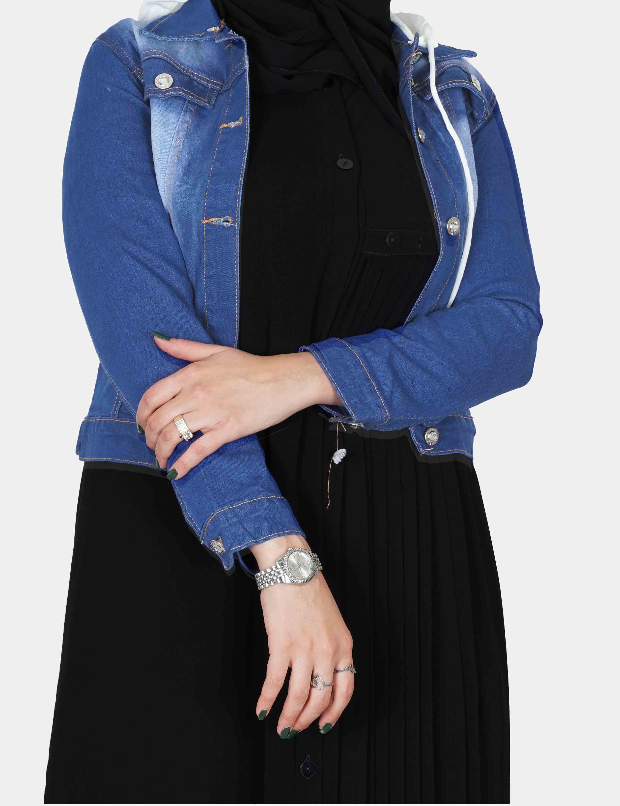 جاكت جنز فاتح على زرارات من الأمام. |