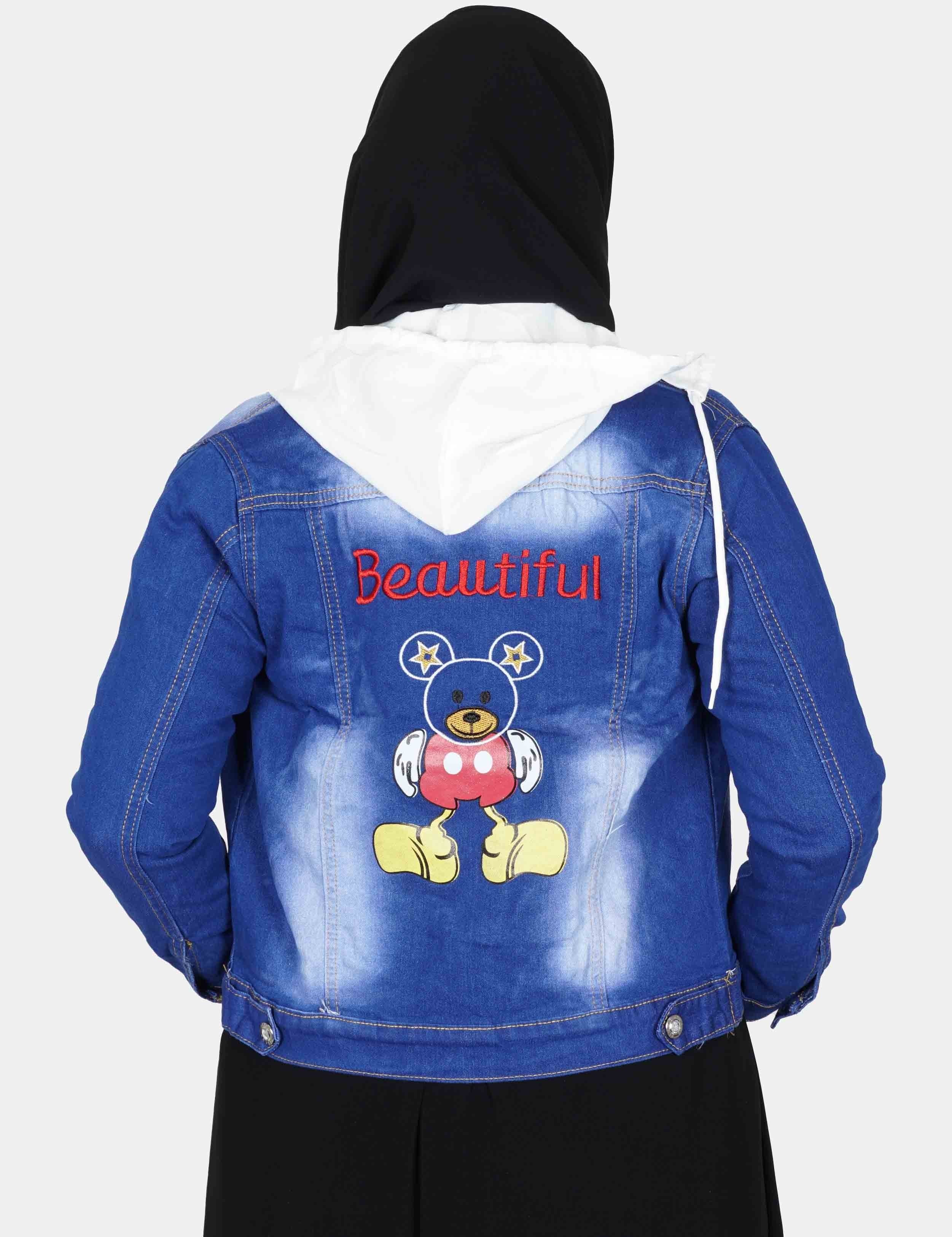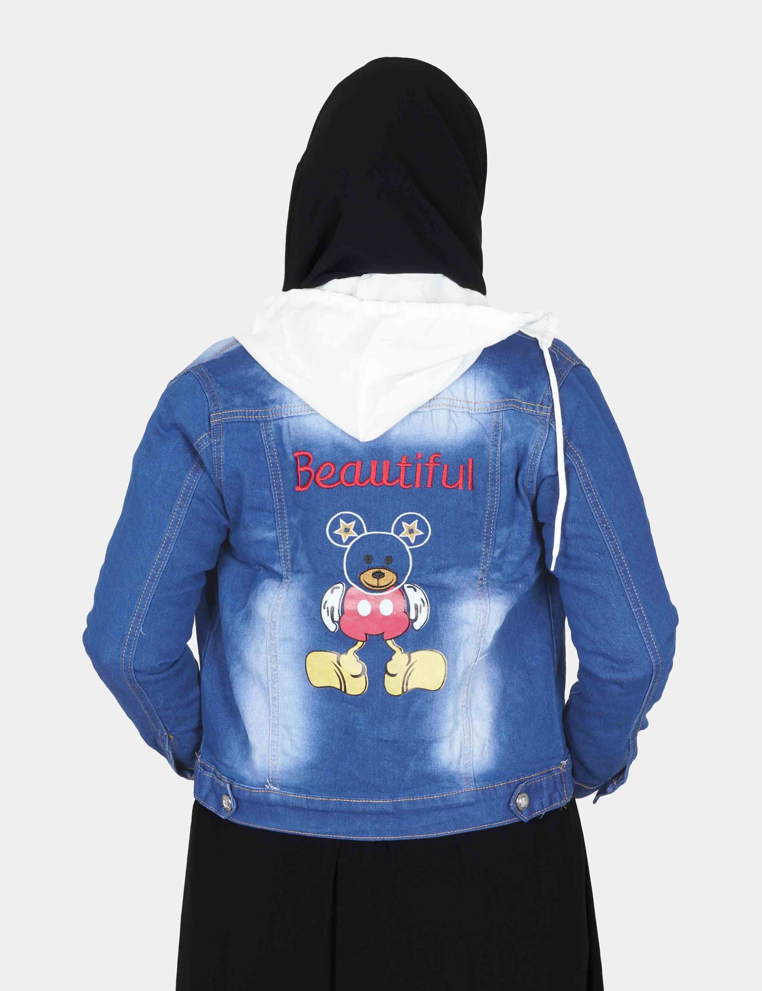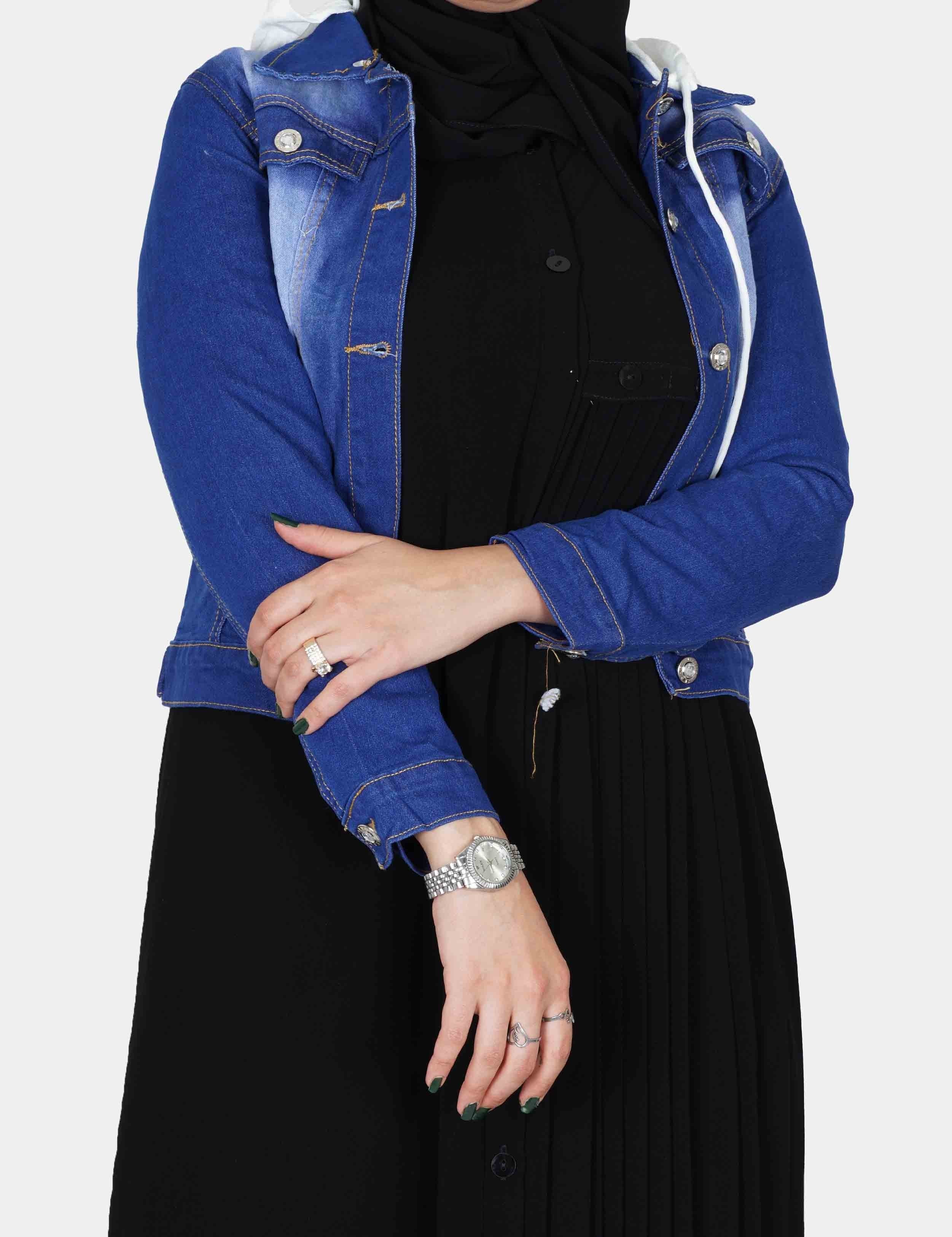 جاكت جنز فاتح على زرارات من الأمام. |