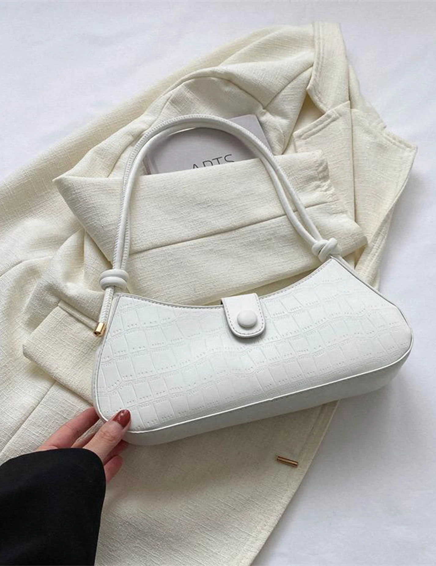 • تصميم ولون أنيقان: تتوفر هذه الحقيبة باللون الأبيض والاسود ، وتتميز بالرقي وتتناسب بسهولة مع أي زي. يضيف نمط الجلد الفريد لمسة من الأناقة العصرية، مما يجعلها إكسسوارًا مميزًا.