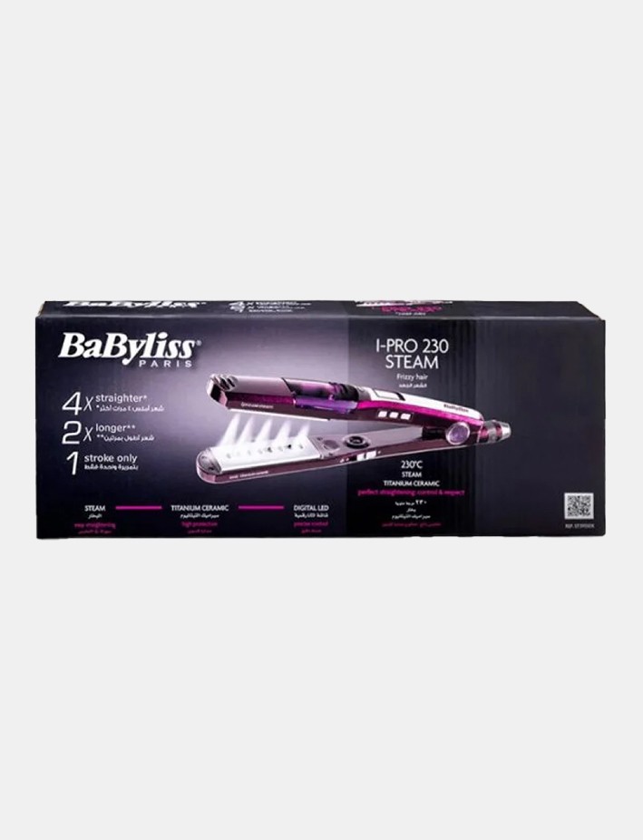 مكواة فرد الشعر بالبخار اي برو 230 من بيبي ليس بنفسجي وفضي : مزود بشاشة LCD تمكّنك من مراقبة مستوى الحرارة في الوقت الحقيقي |