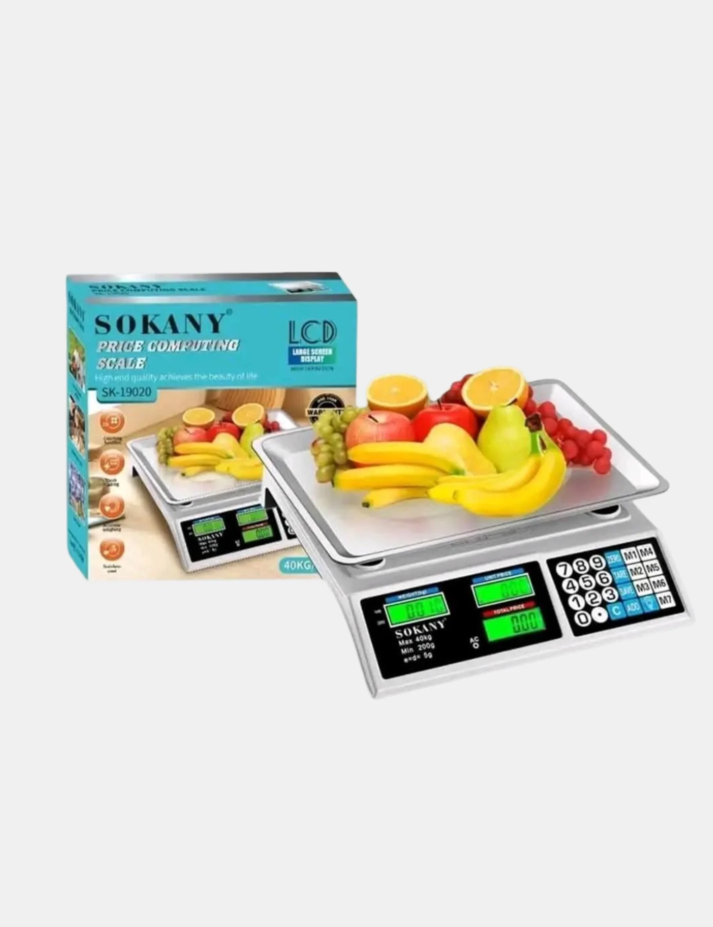أصحاب المحلات التجاريه ميزان الكتروني حساس ودقيق وسهل الاستخدام بيوزن لغاية 40 كيلو جرام يعمل عن طريق الكهرباء وفي حالة انقطاع الكهرباء يوجد به بطارية يحتوي على شاشه LCD مضيئه لقراءة الوزن بكل سهوله |