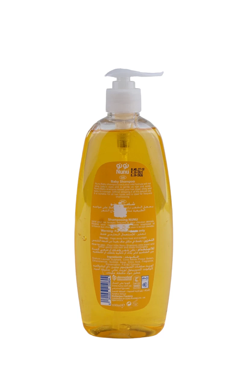 لن تؤذي تركيبة شامبو نونو للأطفال اللطيفة عيني الطفل وهي لطيفة على الشعر وفروة الرأس. شامبو الأطفال من نونو يترك الشعر نظيفًا ولامعًا وسهل التسريح ؛ دون التقليل من زيوتها الطبيعية. إنه مناسب لجميع أنواع الشعر ومثالي للشامبو المتكرر.كيفية الاستخدام :