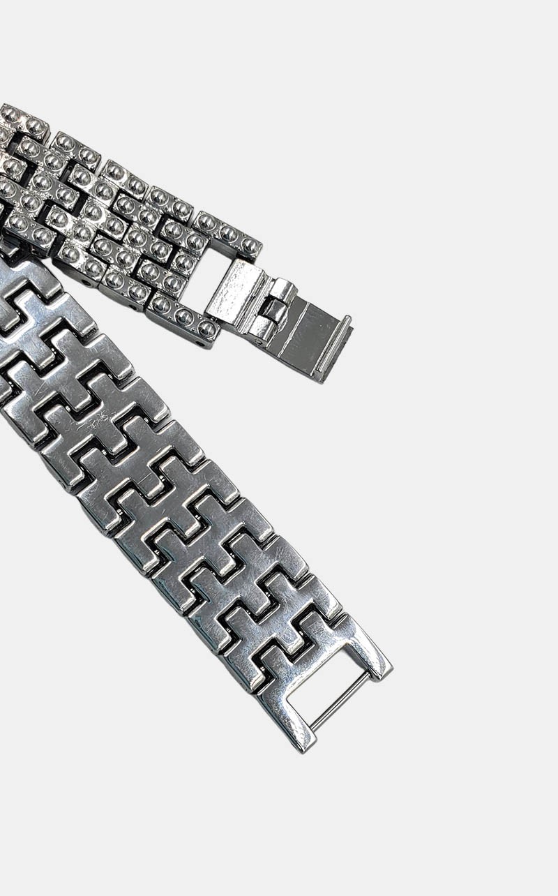 ساعة زركون درجة أولى لونها فضي، تمتاز بلمعانها وبريقها الساحر وشكل إطارها المربع والفصوص المحاطة بالإطار والموزعة على حزام الساعة، إنها تضيف لمسة أنيقة وراقية على إطلالتك.