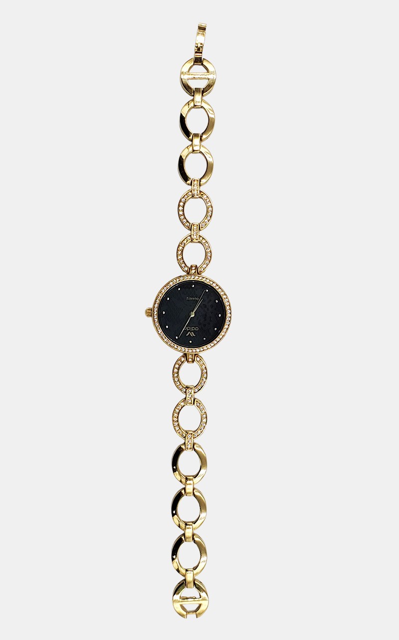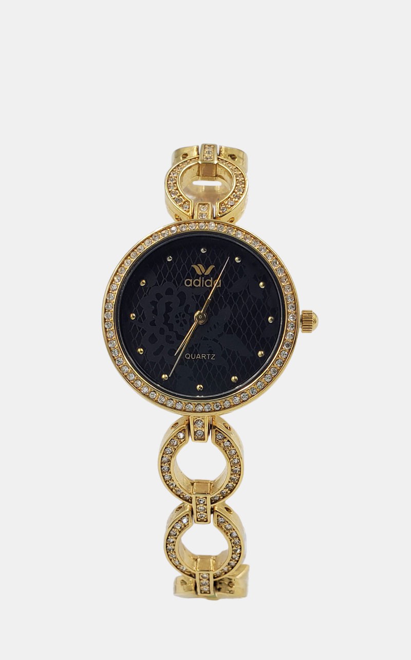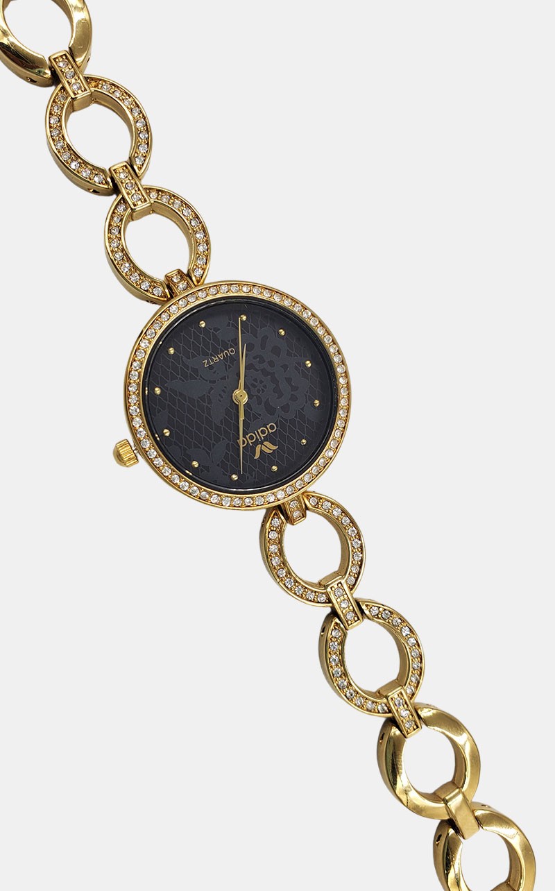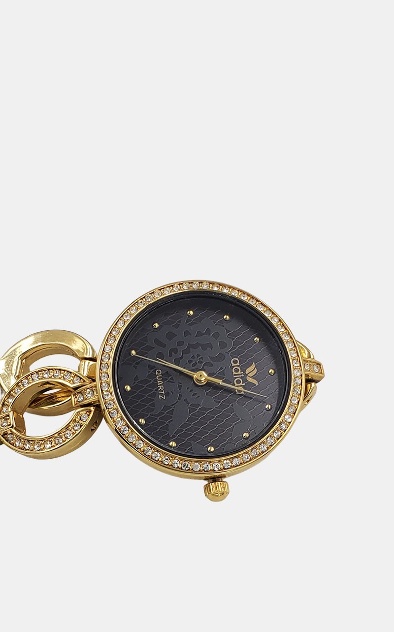 ساعة  لون ذهبي على فصوص فضي، ساعة راقية وأنيقة تناسب المناسبات.