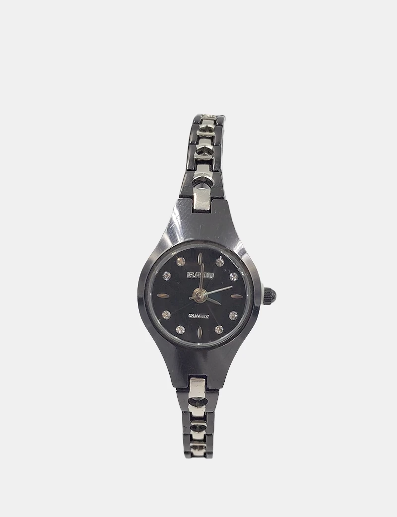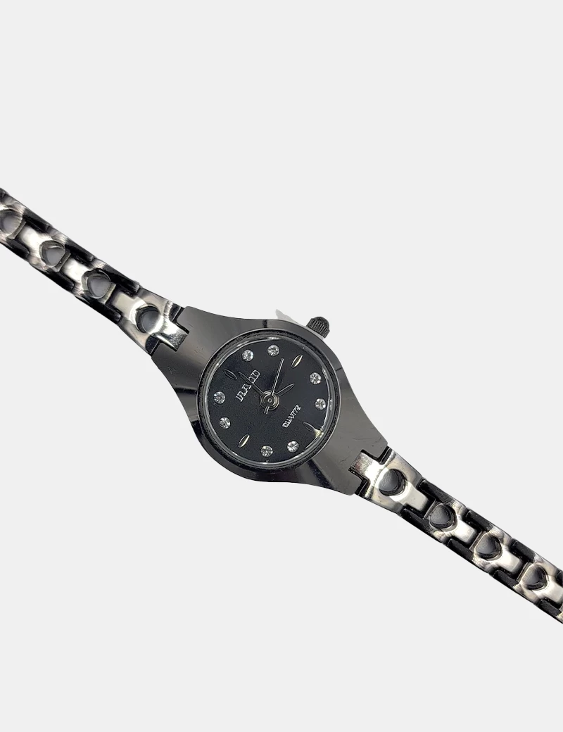 ساعة نسائي سيراميك لا تتغير مع مرور الوقت حزام اليد رفيع وأنيق وعليه خط فضب وتتميز بلونها الأسود الراقي فصوص داخل العقارب.