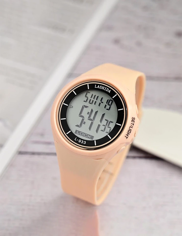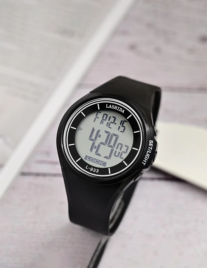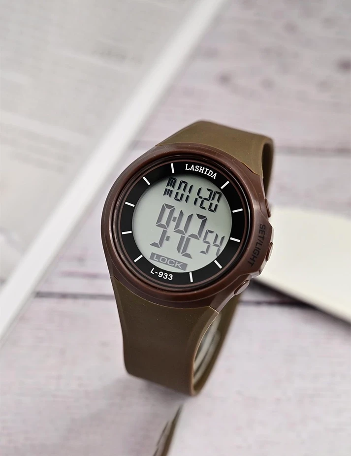 الميزات منبه، تاريخ تلقائي، كرونوغراف، تقويم كامل، اليوم/التاريخ، غير محدد، مقاوم للماء، شاشة LED، مضيئة، عرض الأسبوع، إضاءة خلفية نوع مادة السوار سيليكون