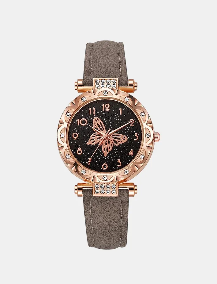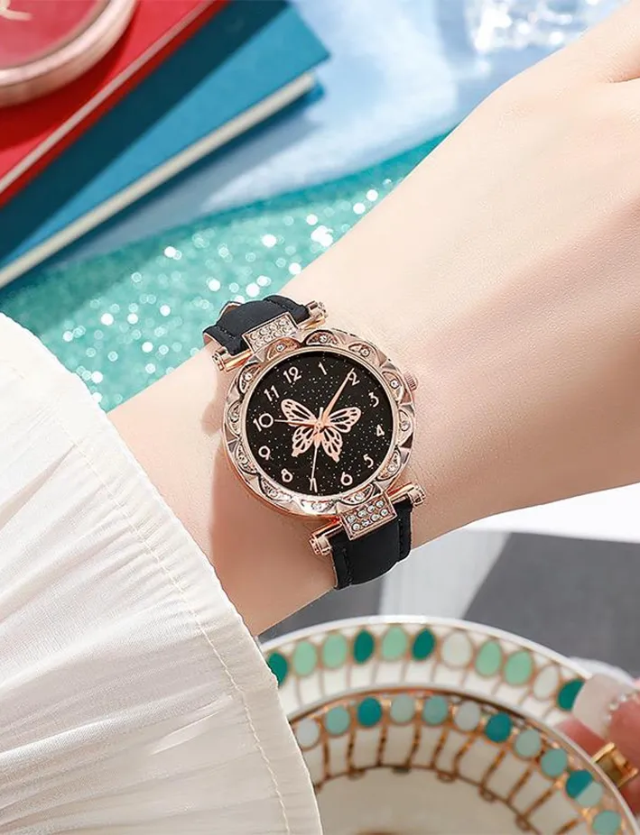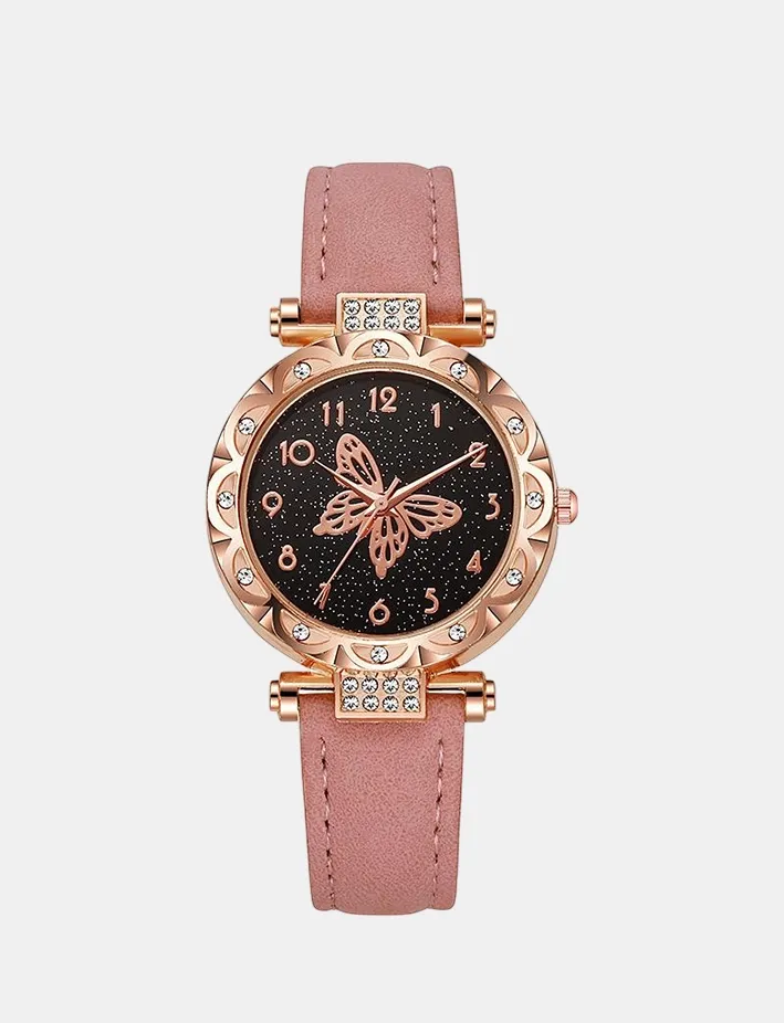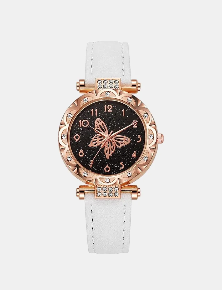 ساعة يد نسائي - نقش الفراشه - غير مقاومة للماء |