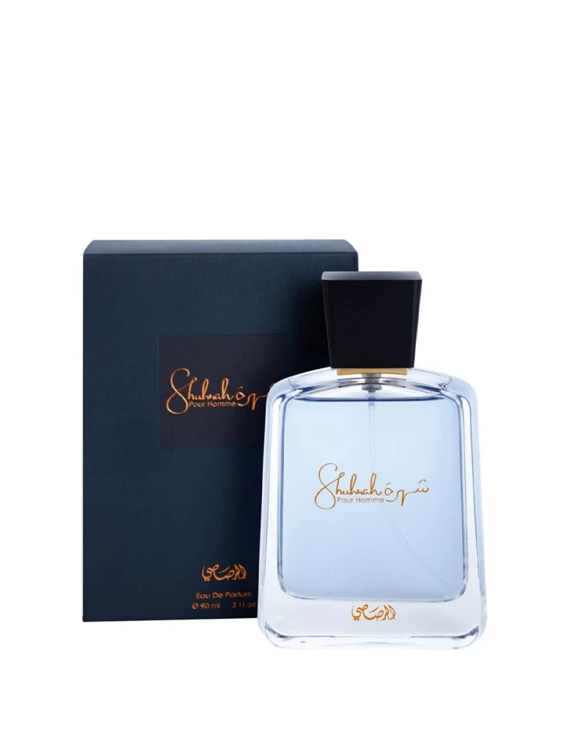 Shuhrah Pour Homme Rasasi عطر خشبي – أروماتك للرجال . إفتتاحية العطر أوراق الطماطم, الفريزيا و الورد; قلب العطر الورد, خشب الصندل, الياسمين و خشب الأرز; قاعدة العطر تتكون من الجلود, العود, المسك, طحلب البلوط (طحلب السنديان) و العنبر.