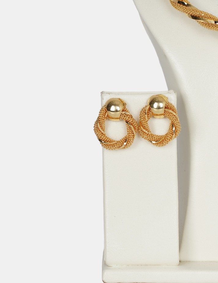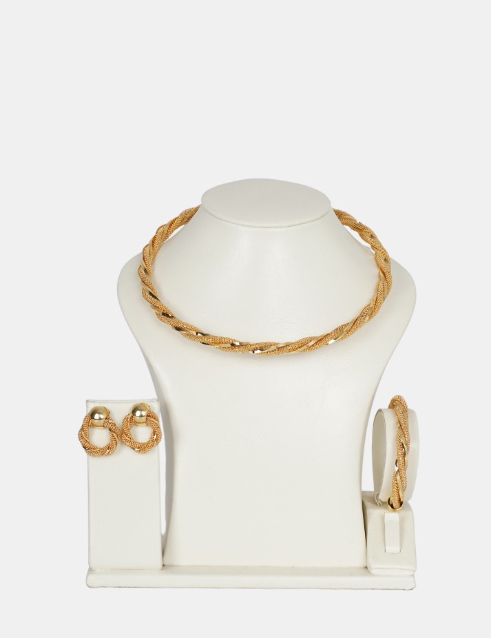 طقم مطلي ذهب معه أسوارة وحلقات أذن ناعمة وراقية، يتميز بتصميمه الراقي والناعم، يضفي لأطلالتك لمسة ساحرة وأنيقة. |