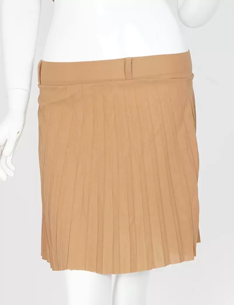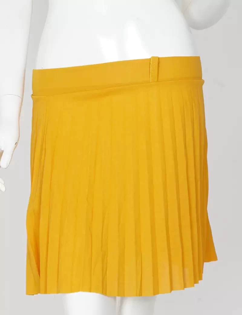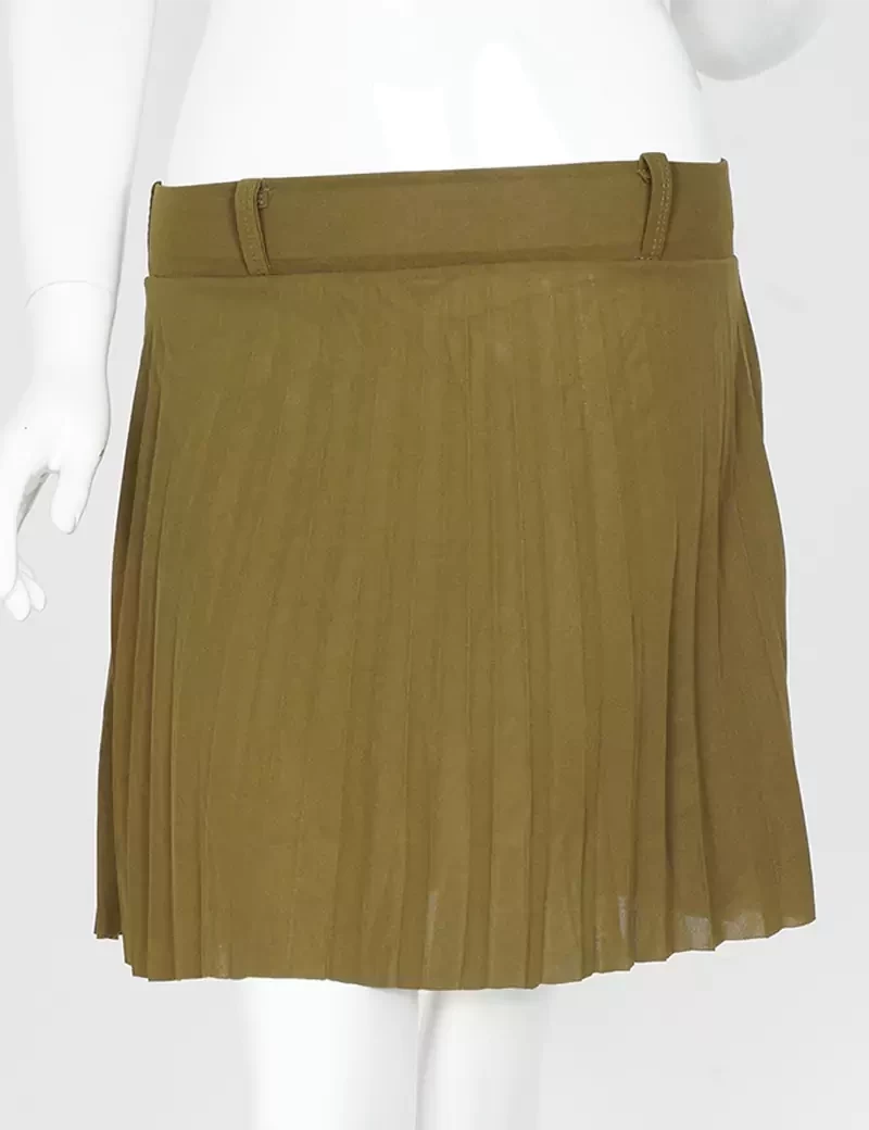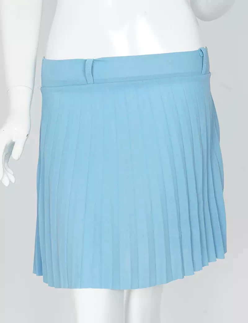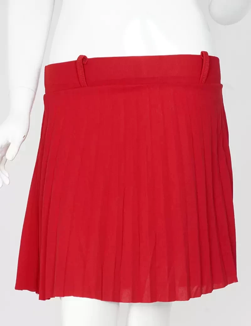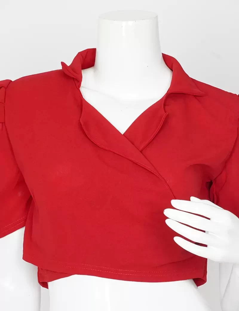 طقم قطعتين بلوزة بأكمام قصيرة كسرات من الكتف وقصة صدر متعاكسة، وتنورة قصرة كسراتيتوفر منه ستة ألوان الأحمر والبني والزيتوني والأصفر والسماوي والوردي. |