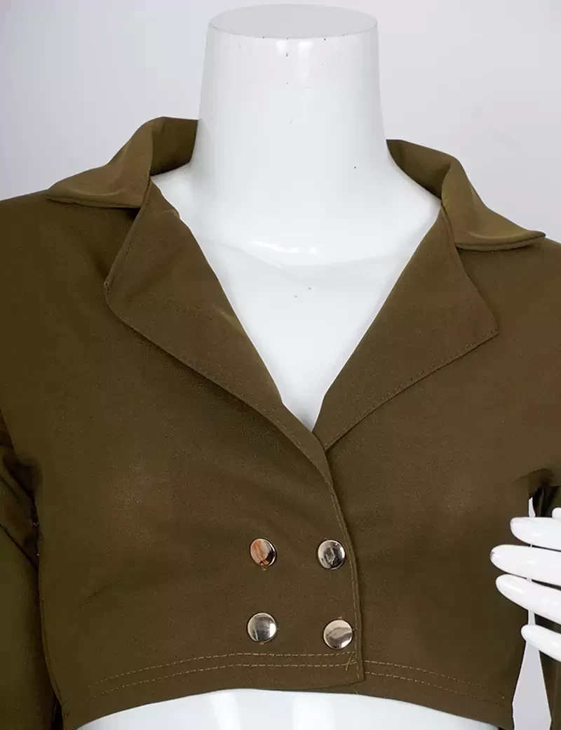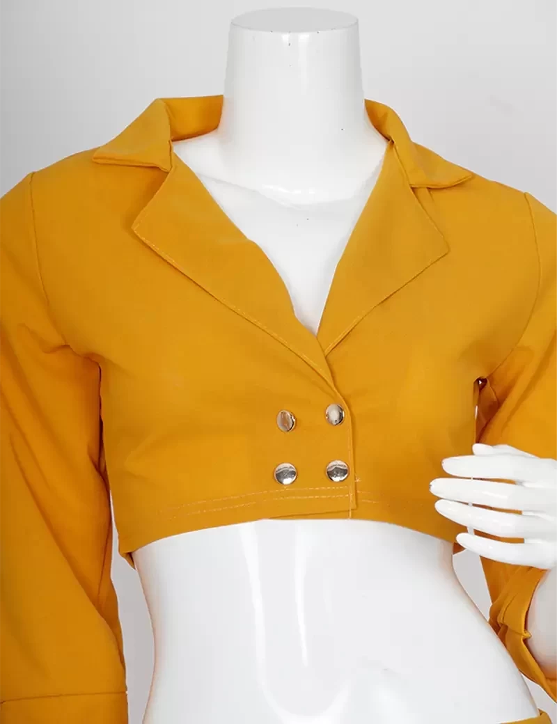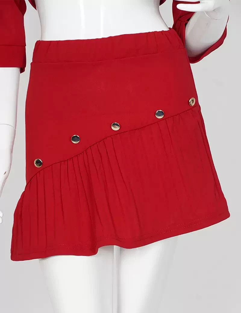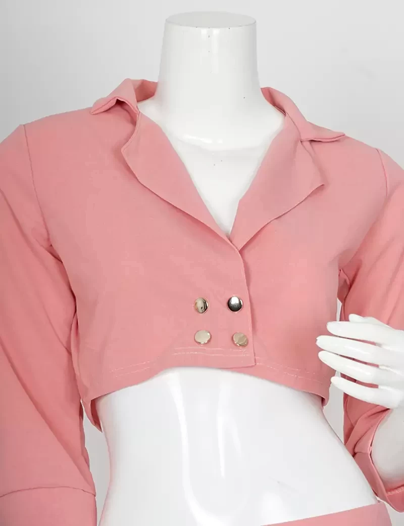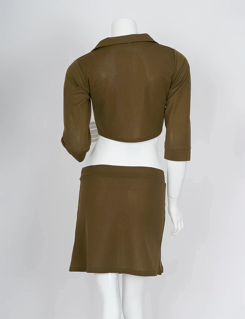 طقم مكون من قطعتين بلوزة على ياقة وزرارات من الأمام وأكمام متوسطة الطول " كم حيران" تنورة على زرارات وكسرات من الأماميتوفر منه ستة ألوان السماوي والأحمر والبني والبرتقالي والزيتوني والوردي |
