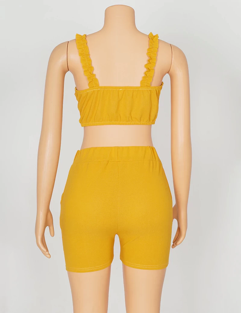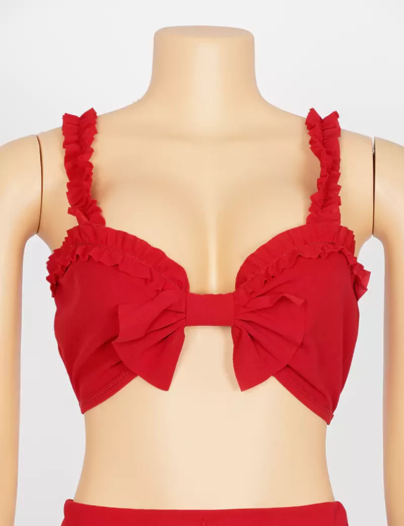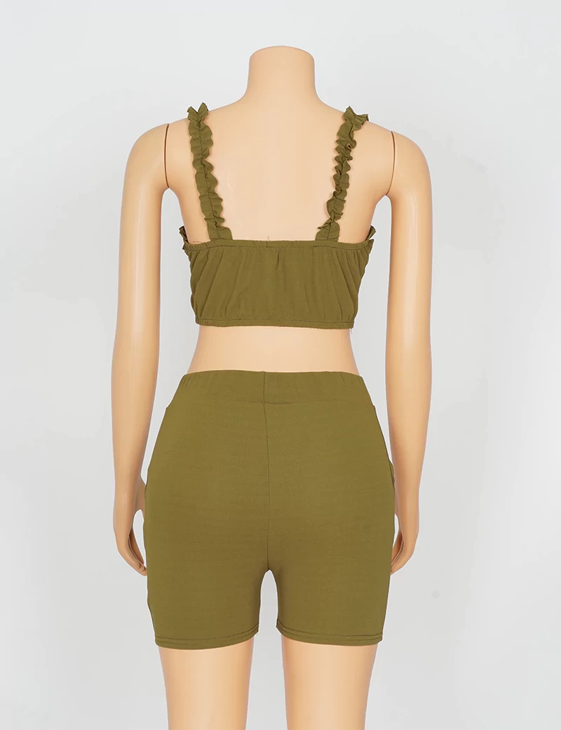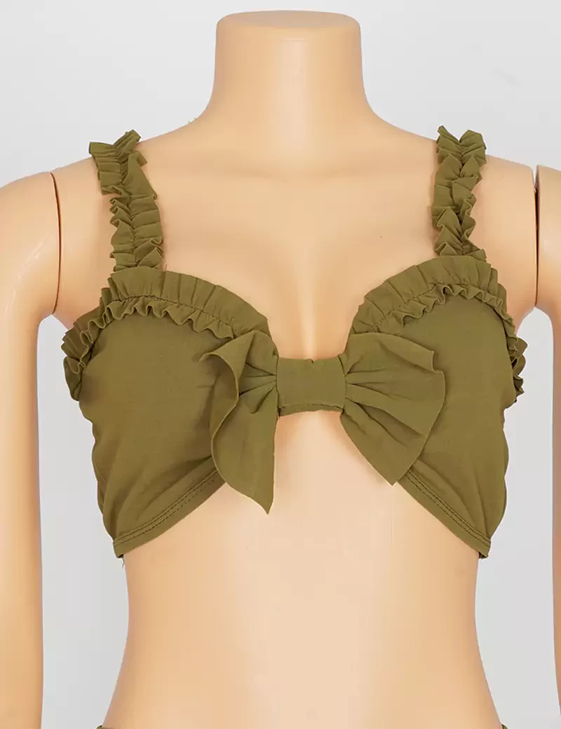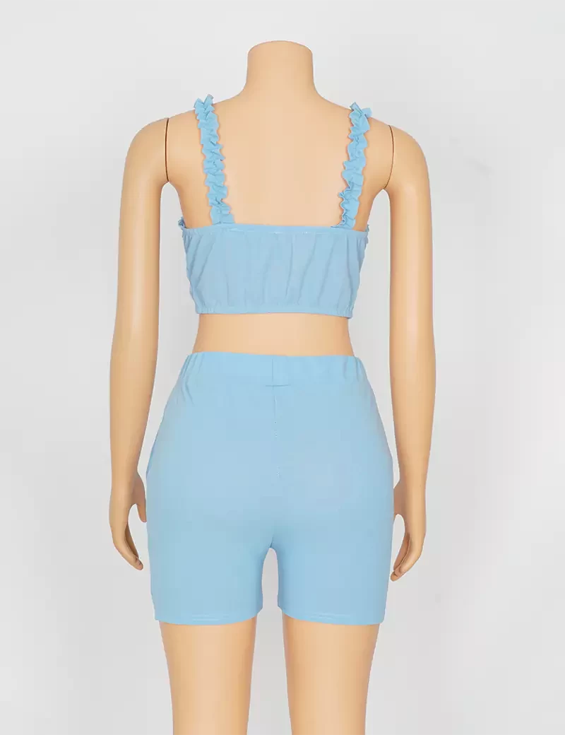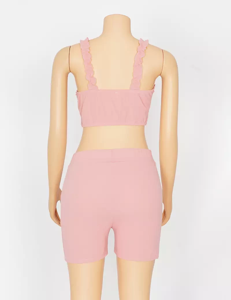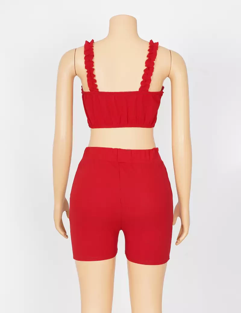 نوع القماش/ استرتشمتوفر بستة ألوان السماوي والبرتقالي الزيتوني والوردي والأحمر والرمادي الفاتحيتكون من قطعتين حمالة صدر على شكل فينكة، وبنطنول شورت. |